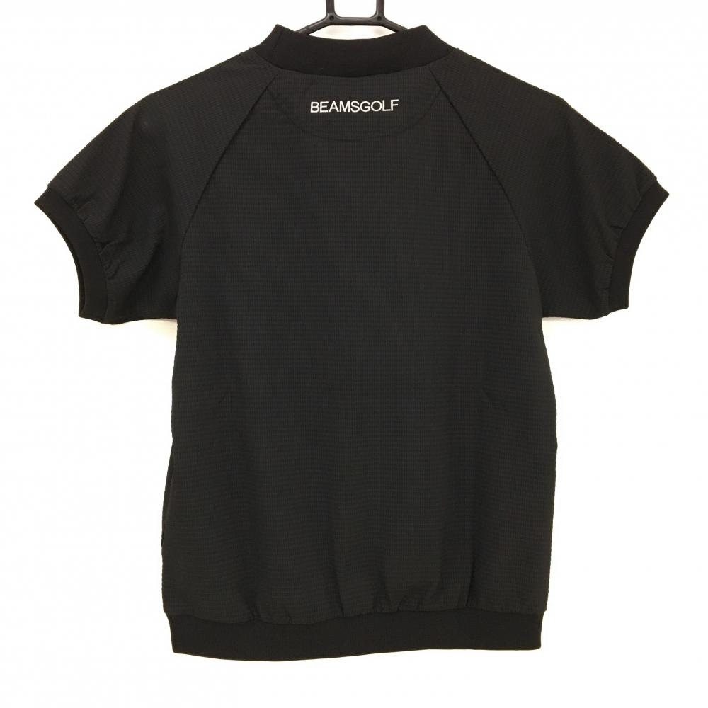 【超美品】ビームスゴルフ 半袖ハイネックシャツ 黒 サッカー生地調 ロゴ白 レディース M ゴルフウェア 2023年モデル BEAMS GOLF