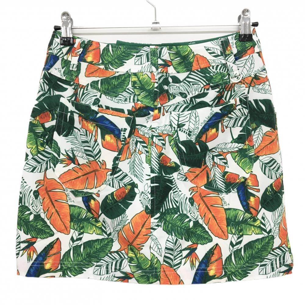 【超美品】ビバハート スカート 白×グリーン リーフ柄 ストレッチ レディース 40(M) ゴルフウェア VIVA HEART
