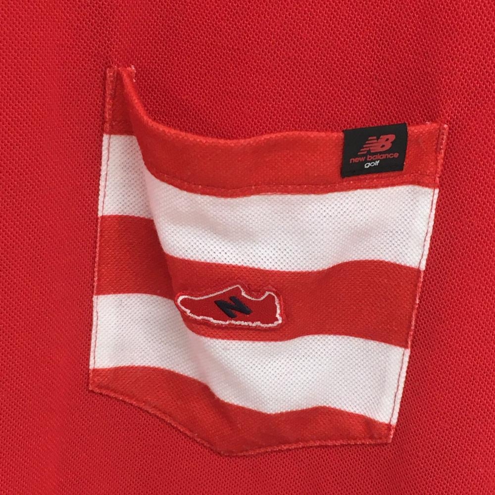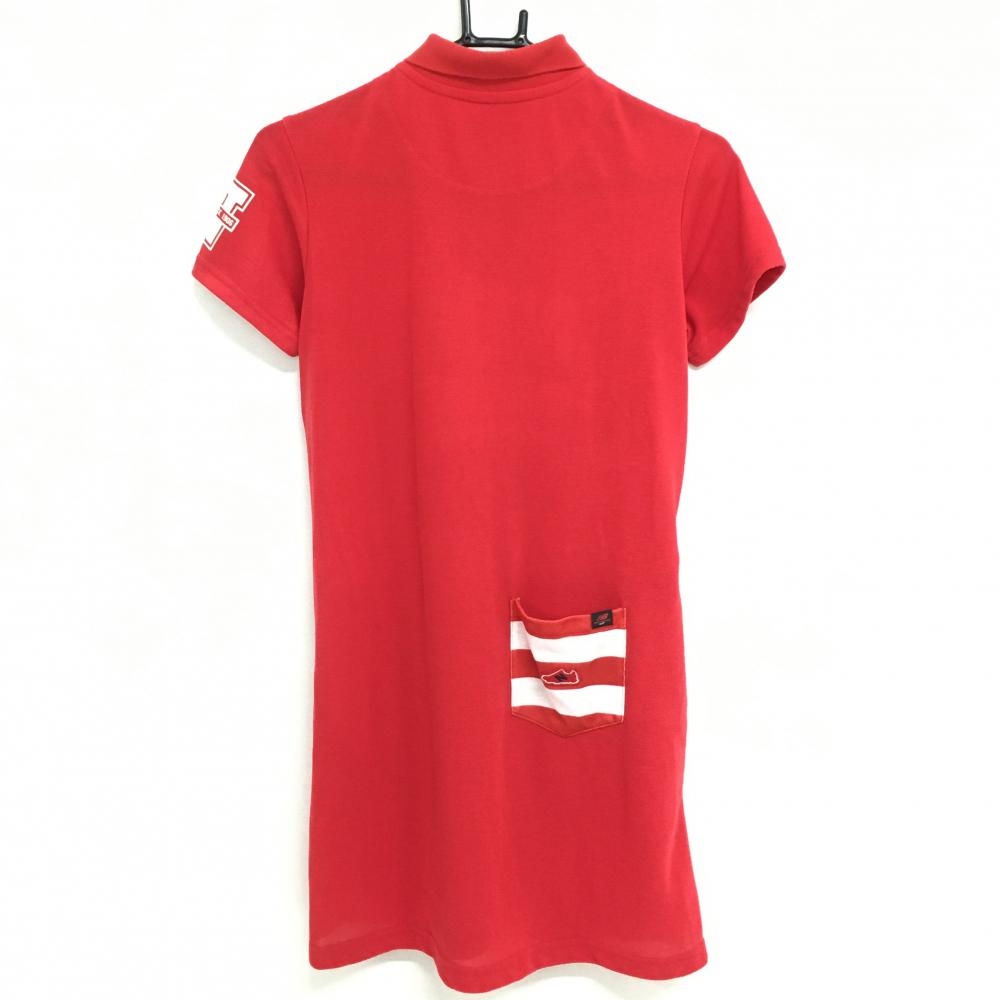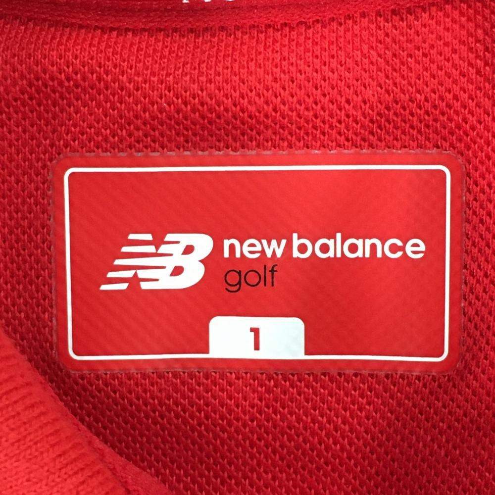 【美品】ニューバランスゴルフ 半袖ポロワンピース レッド×白 パイル地ワッペン レディース 1(M) ゴルフウェア New Balance
