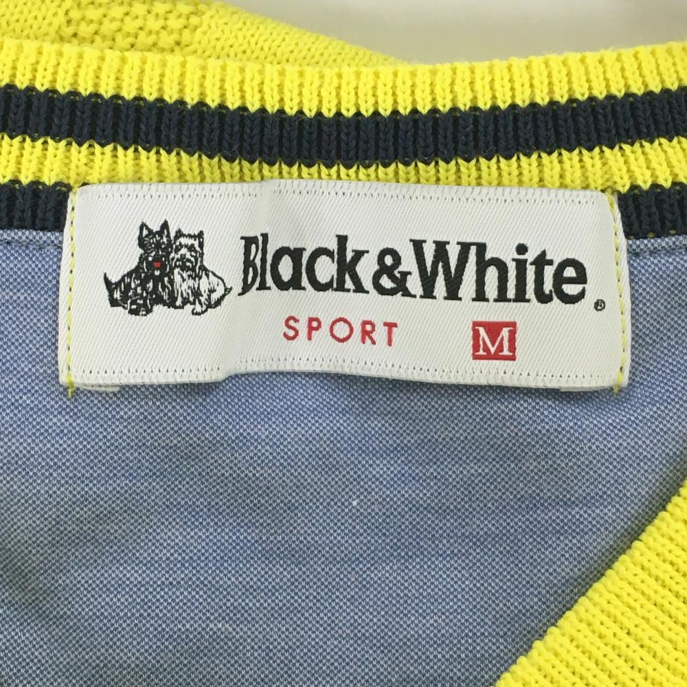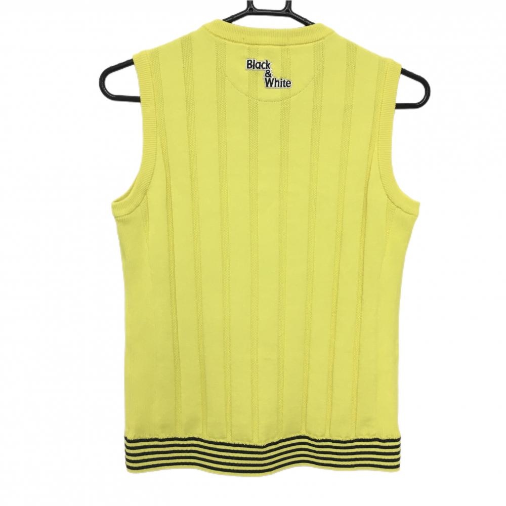 【美品】ブラックアンドホワイト ニットベスト イエロー×黒 前ドット Vネック レディース M ゴルフウェア Black&White