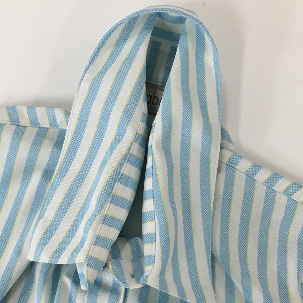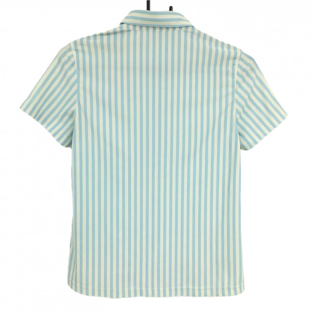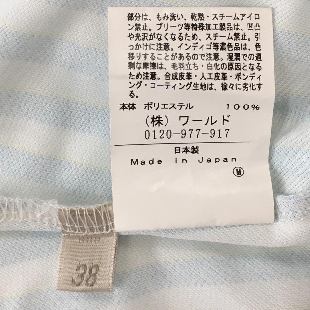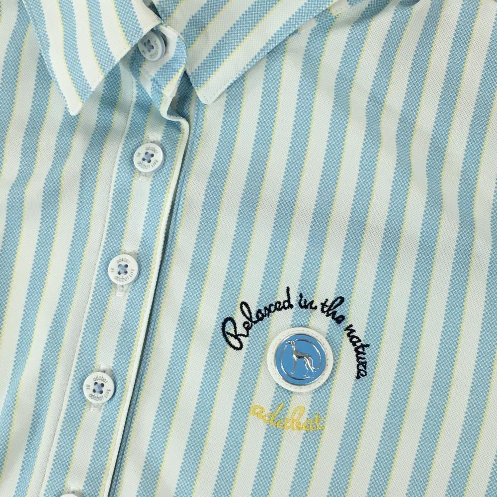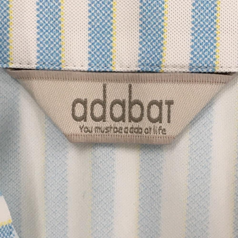 【美品】アダバット 半袖ポロシャツ ライトブルー×白 ストライプ ロゴワッペン レディース 38(M) ゴルフウェア adabat