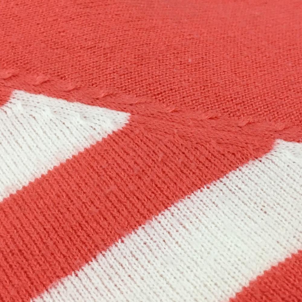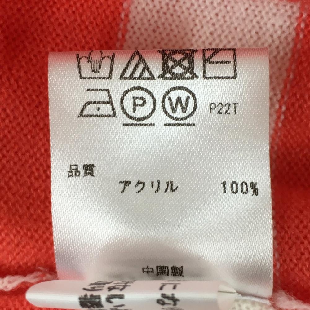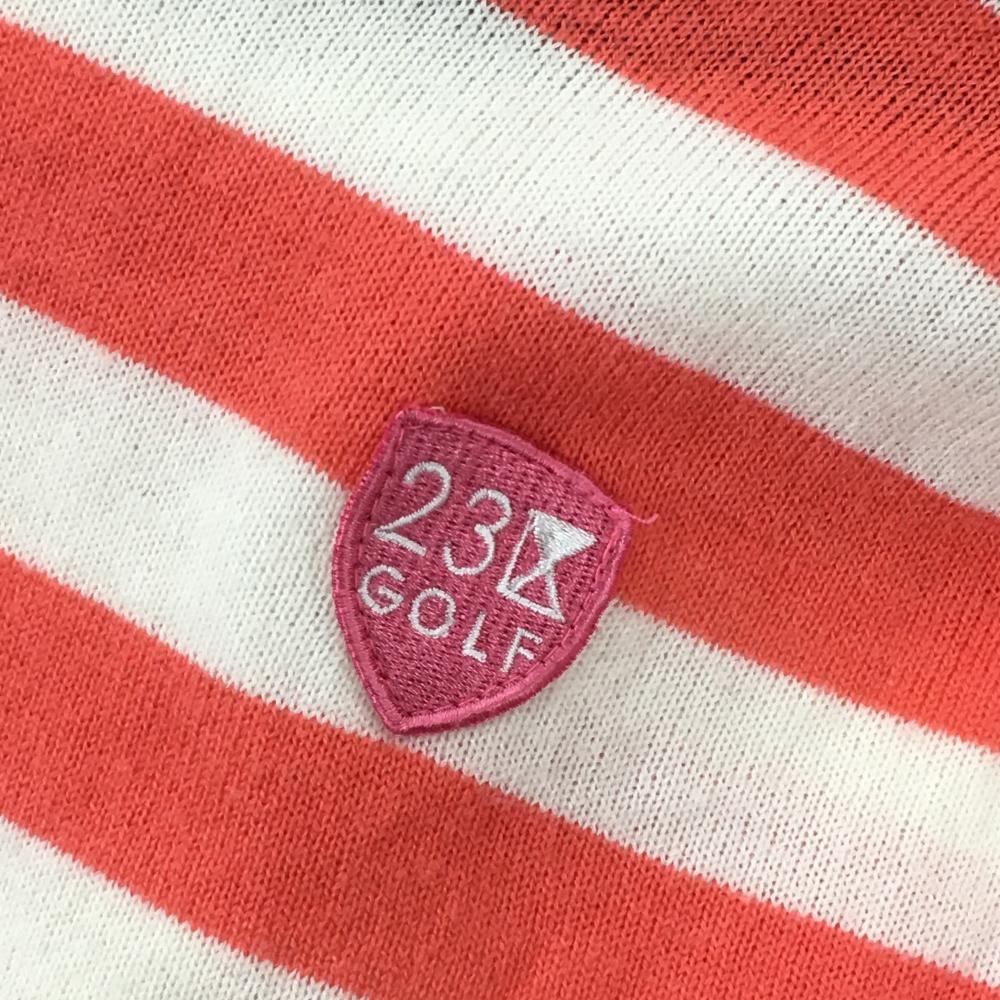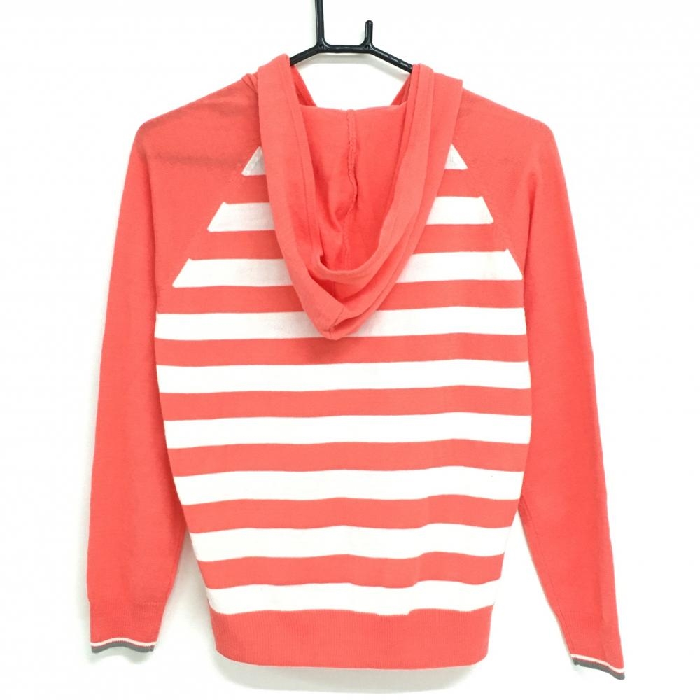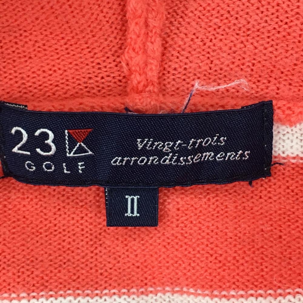 【美品】23区ゴルフ フード付セーター サーモンオレンジ×白 身頃ボーダー ニット アクリル100% レディース II(L) ゴルフウェア 23区