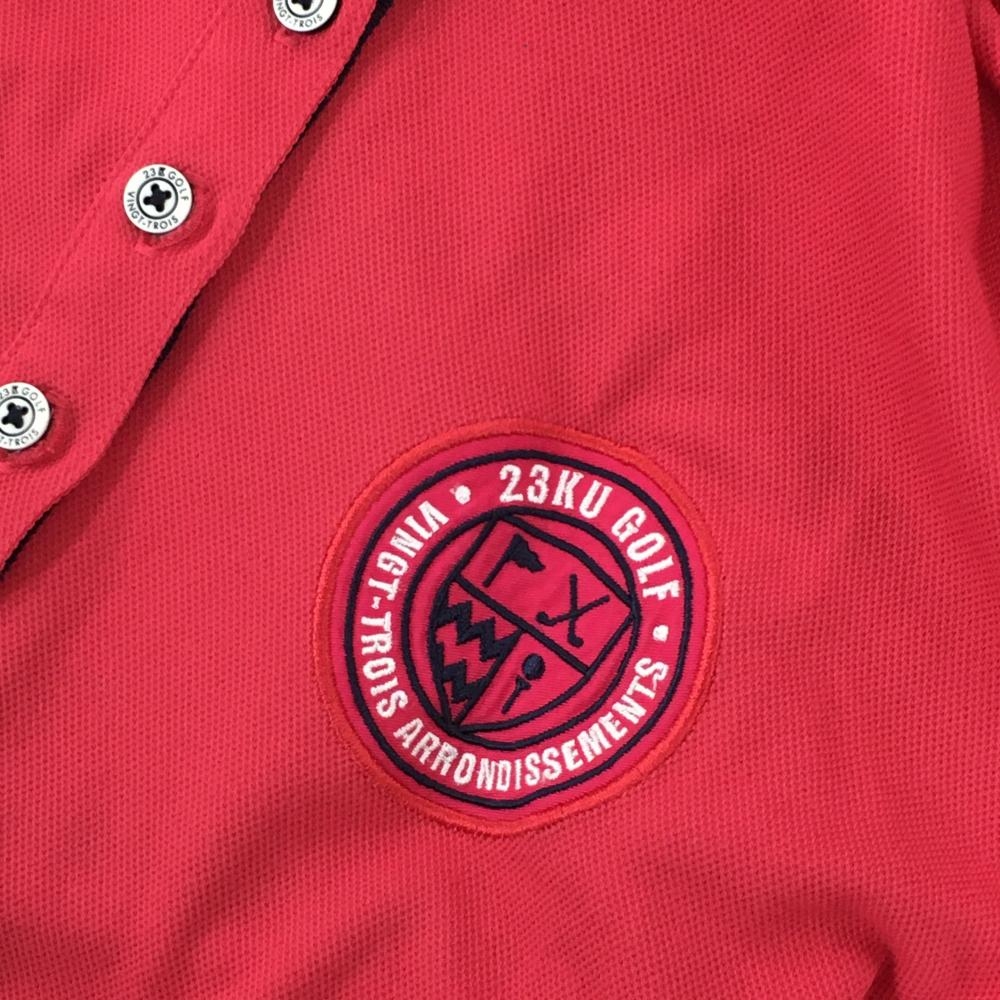 【超美品】23区ゴルフ 半袖ポロシャツ ピンク×ネイビー 袖ネイビーライン レディース I(M) ゴルフウェア 23区