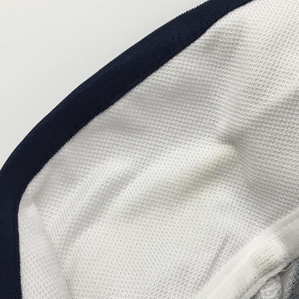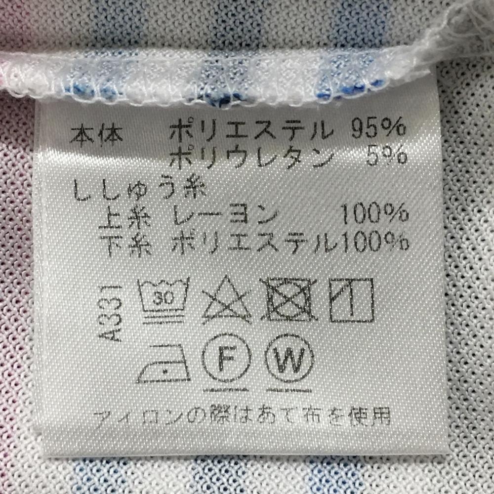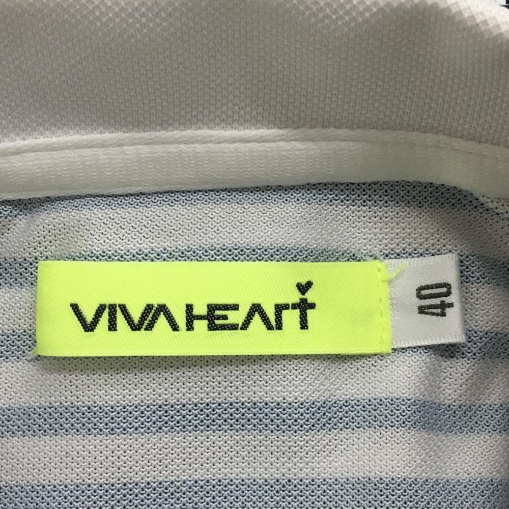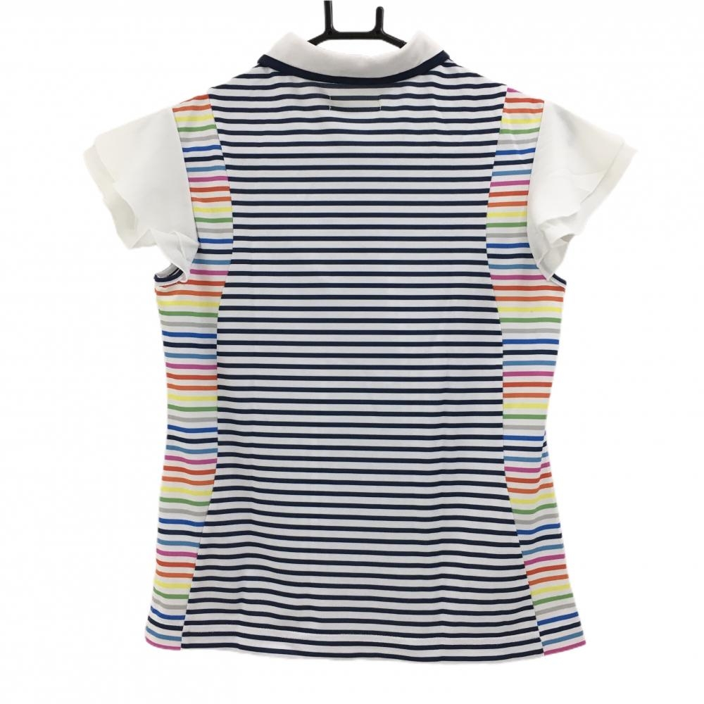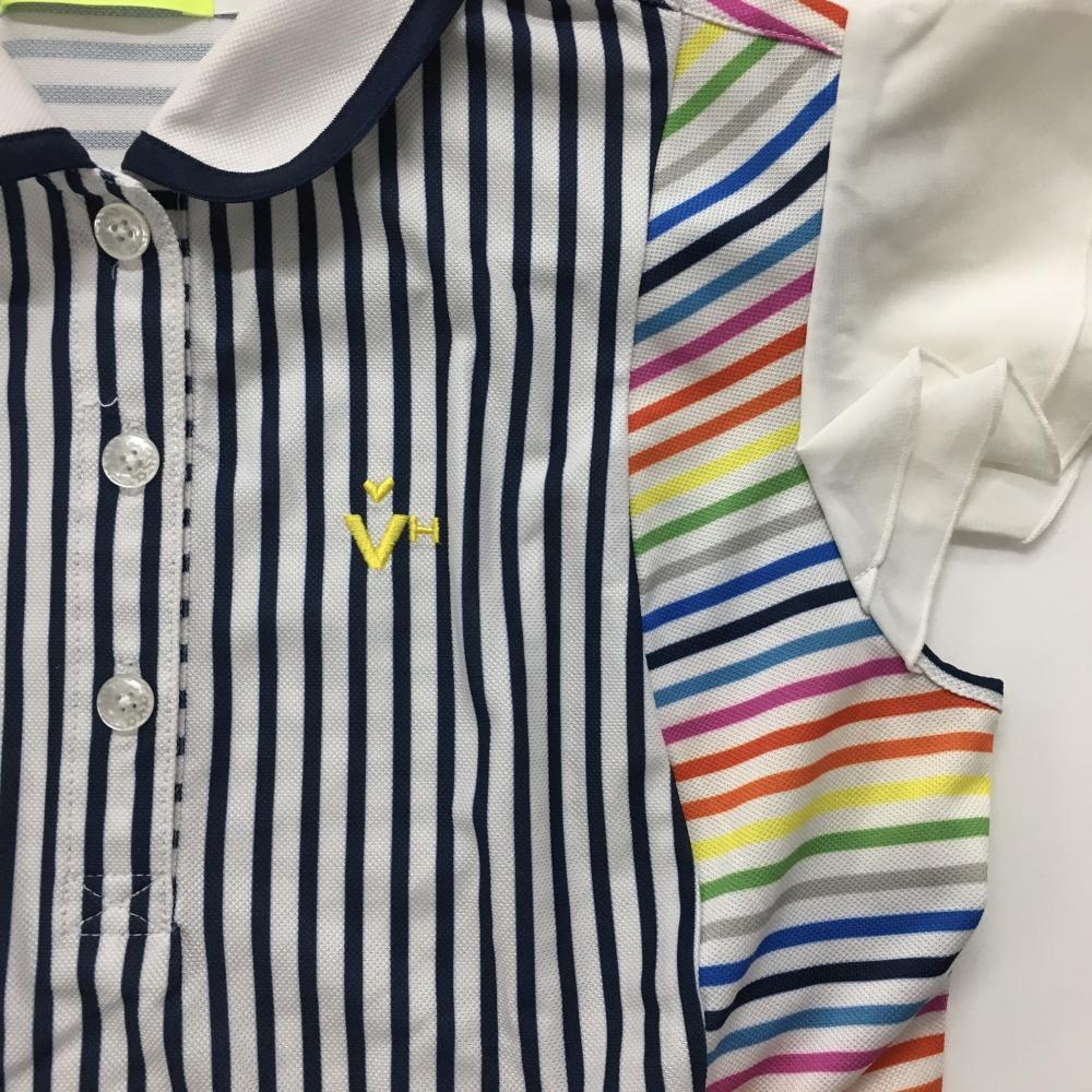 【美品】ビバハート 半袖ポロシャツ 白×マルチカラー ボーダー 袖フリル レディース 40(M) ゴルフウェア VIVA HEART