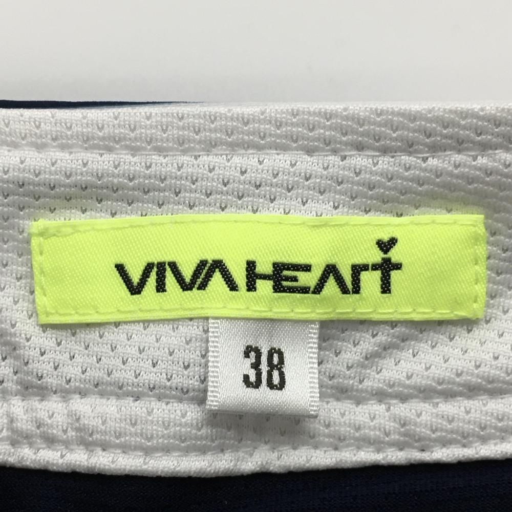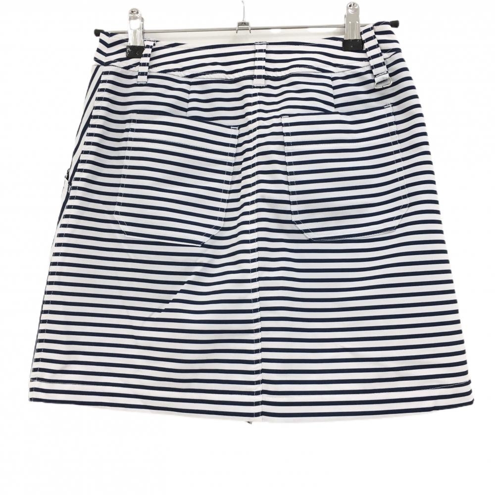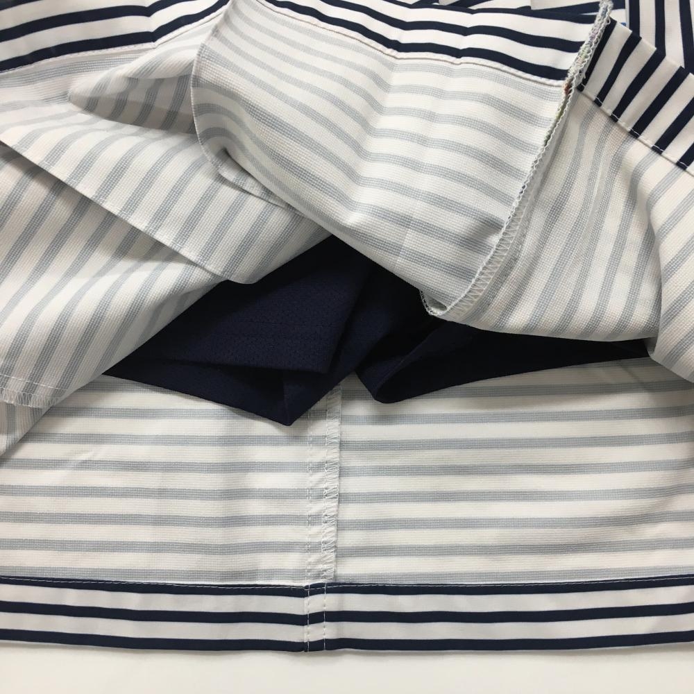 【超美品】ビバハート スカート 白×ネイビー ボーダー 前面プリーツ 内側インナーパンツ レディース 38(S) ゴルフウェア VIVA HEART