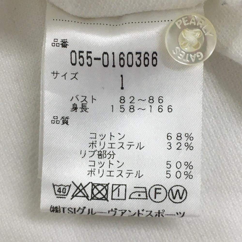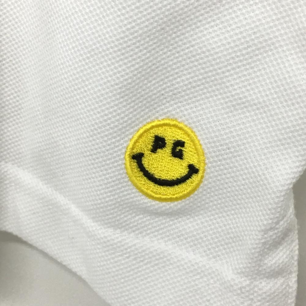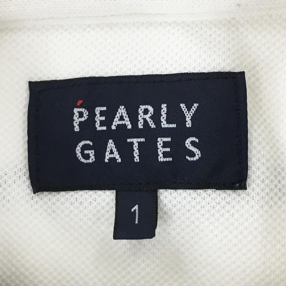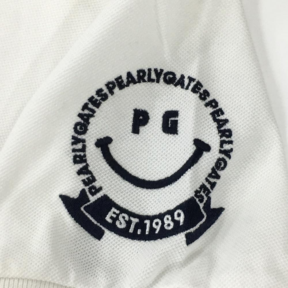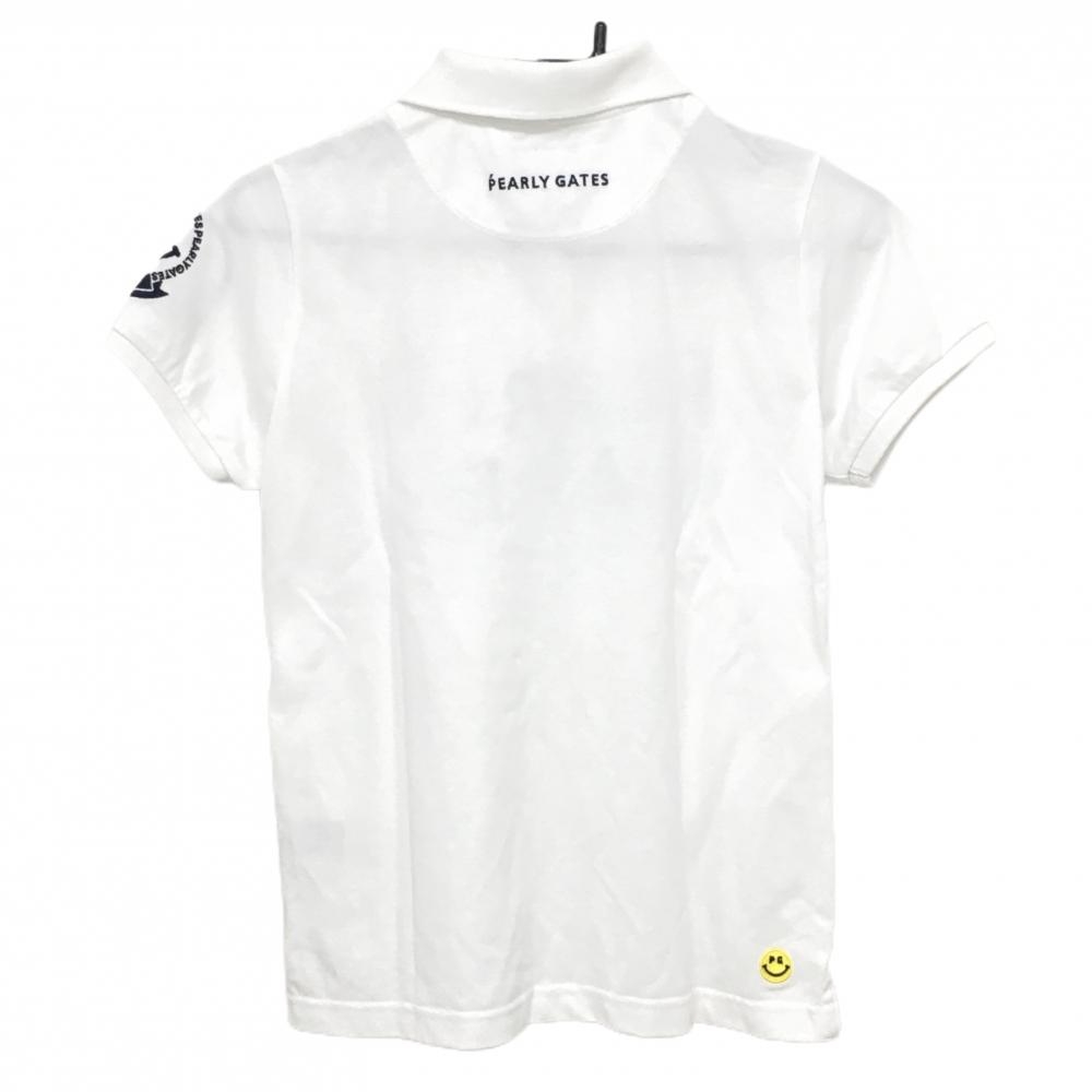 【美品】パーリーゲイツ 半袖ポロシャツ 白×ネイビー ニコちゃん スマイル フェルトロゴ レディース 1(M) ゴルフウェア PEARLY GATES