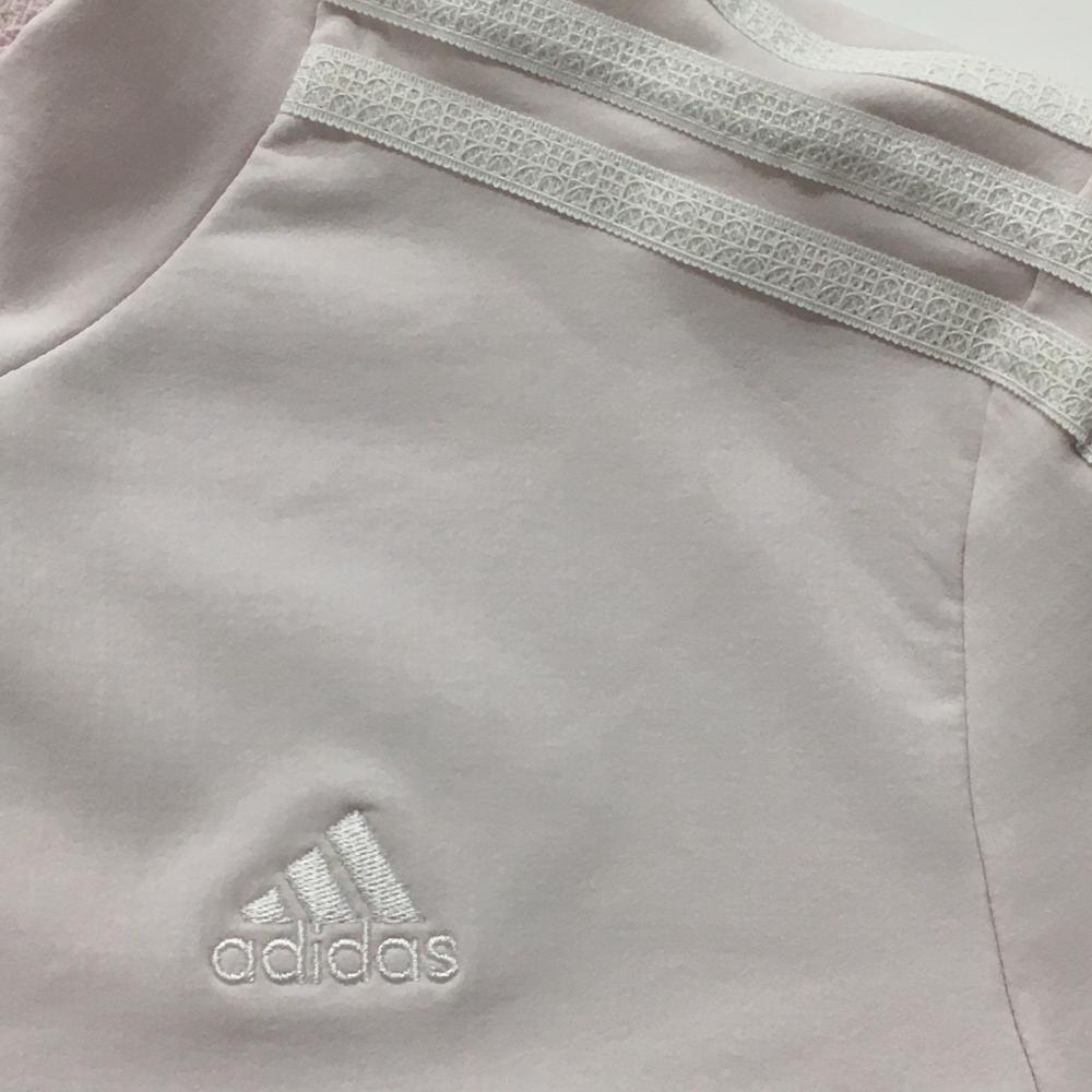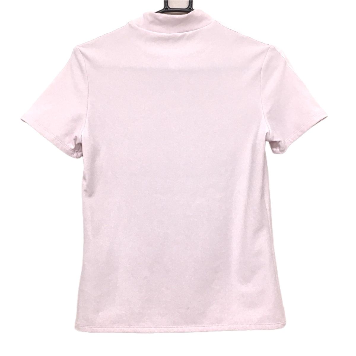 【超美品】アディダス 半袖ハイネックシャツ ライトピンク 袖3ライン レディース M ゴルフウェア adidas