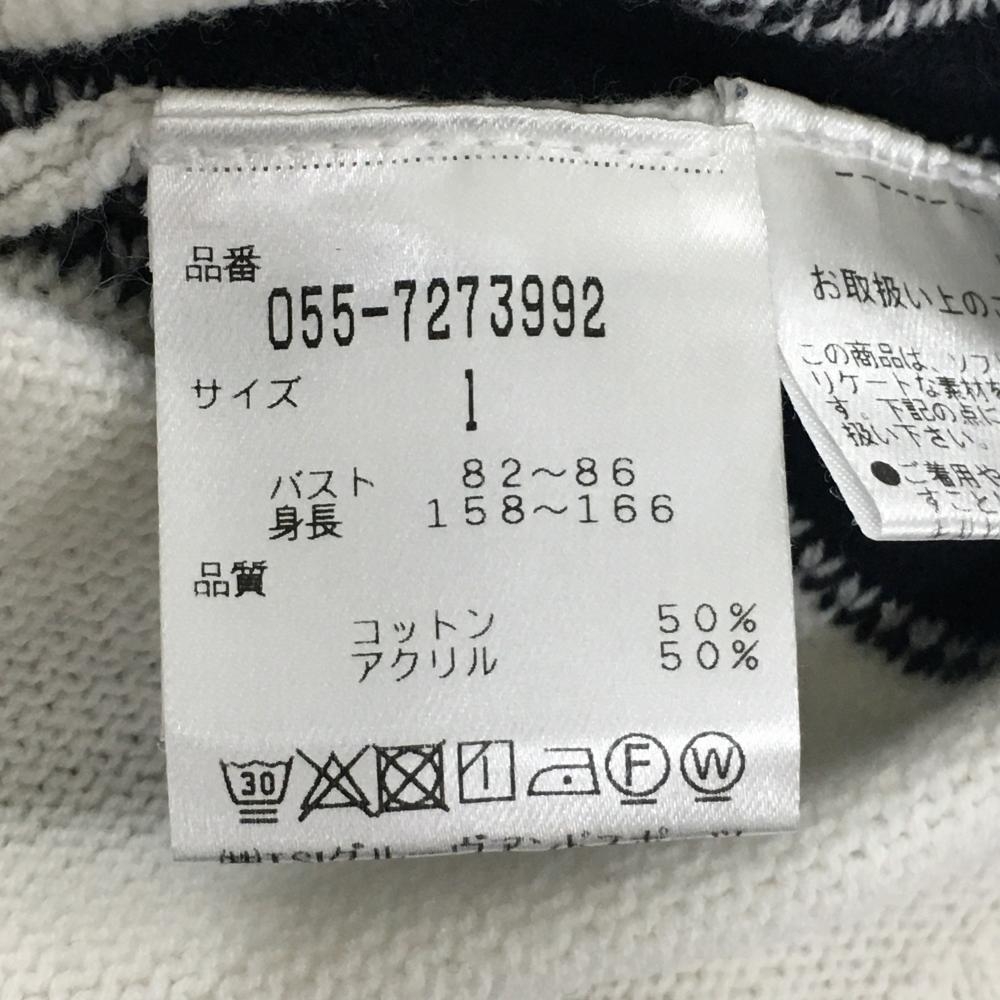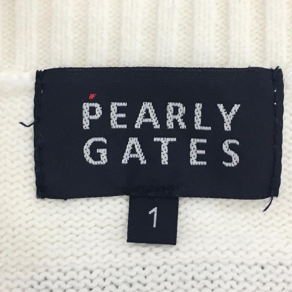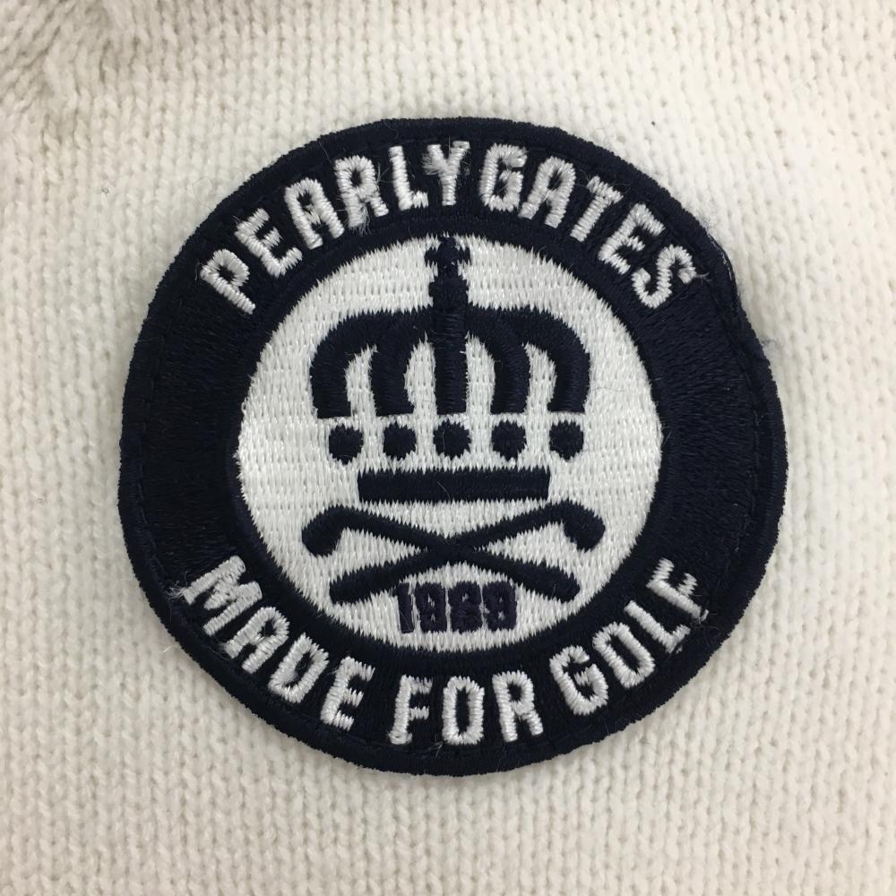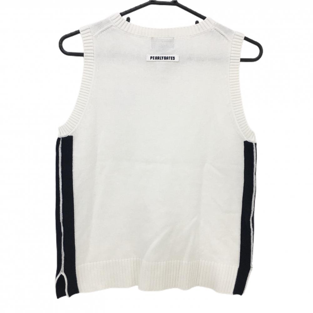 【美品】パーリーゲイツ ニットベスト 白×ネイビー Vネック ワッペン レディース 1(M) ゴルフウェア PEARLY GATES