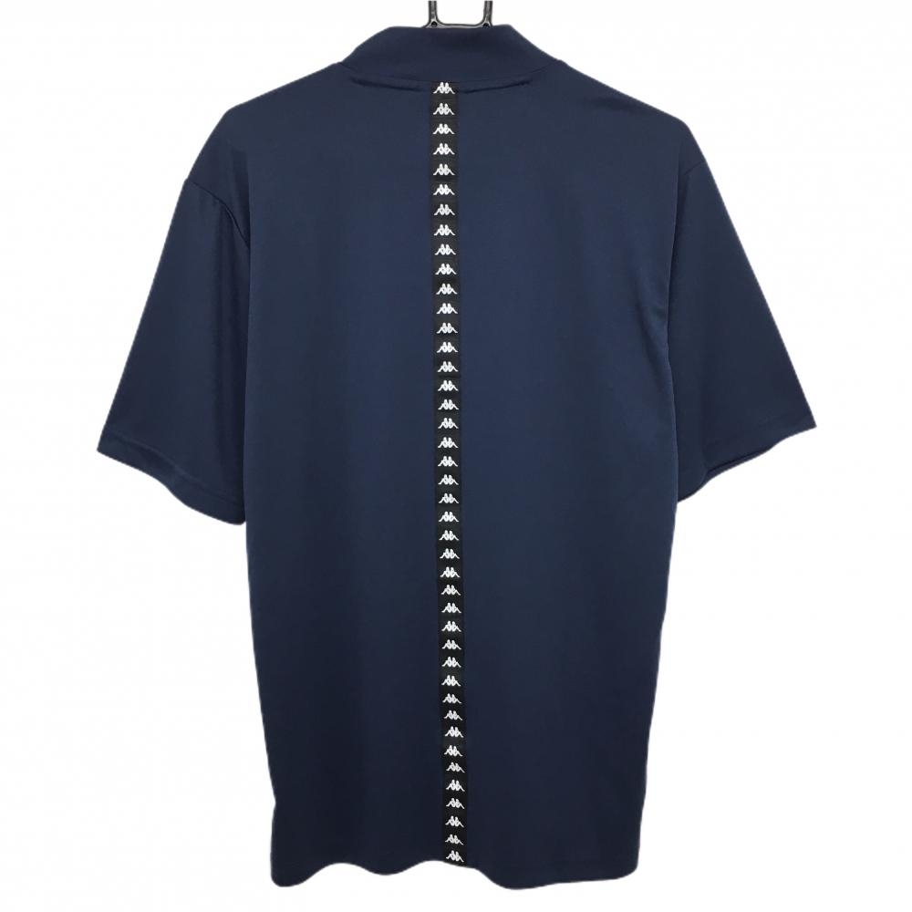 【美品】カッパ 半袖ハイネックシャツ ネイビー 背ロゴテープ メンズ ゴルフウェア Kappa