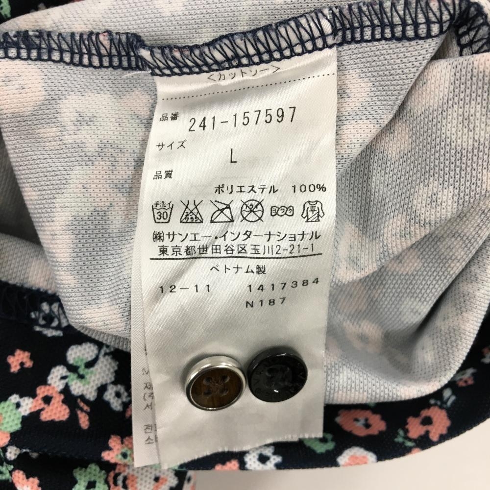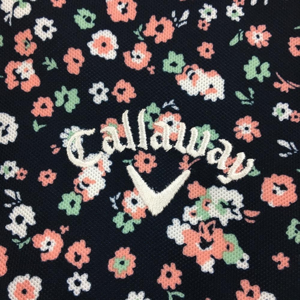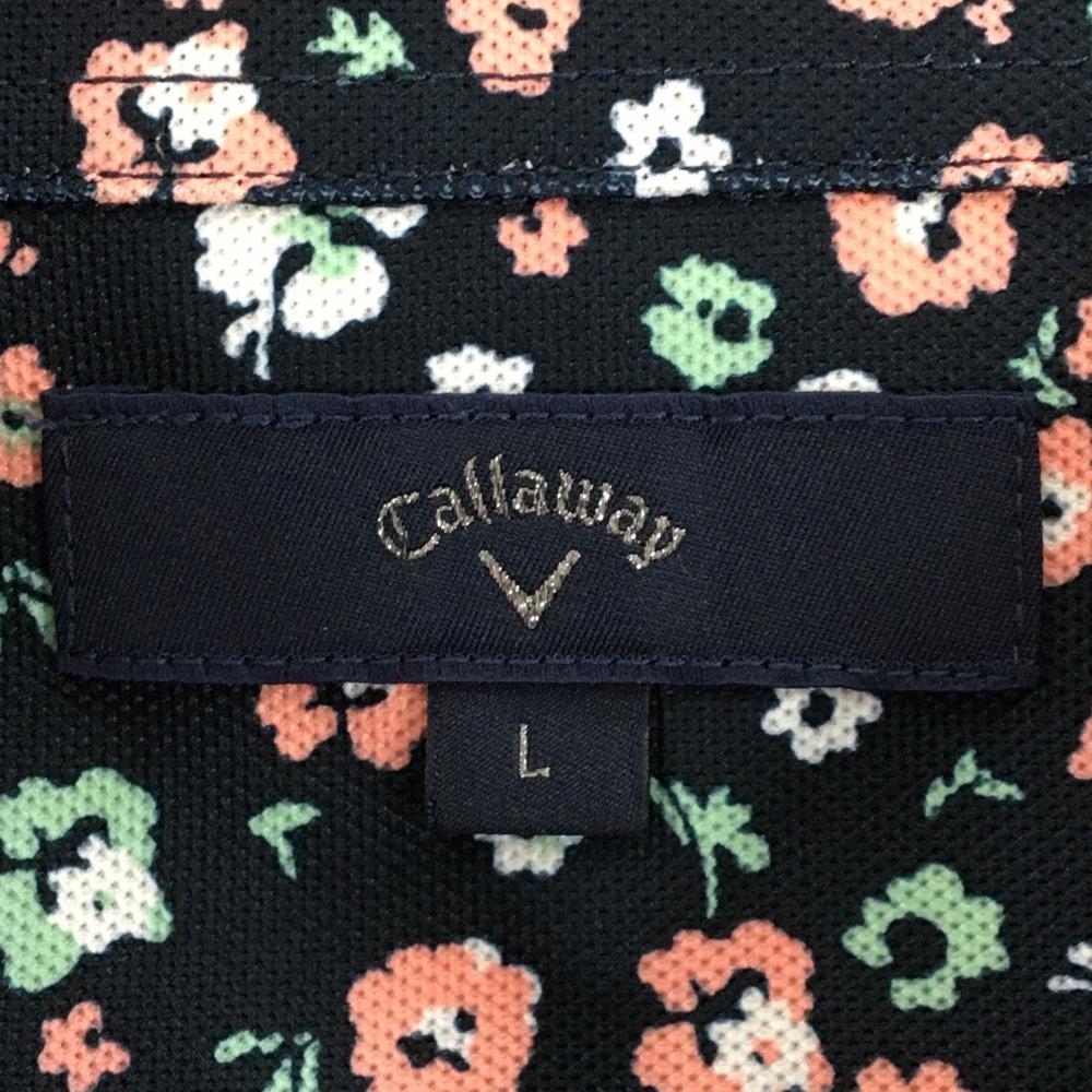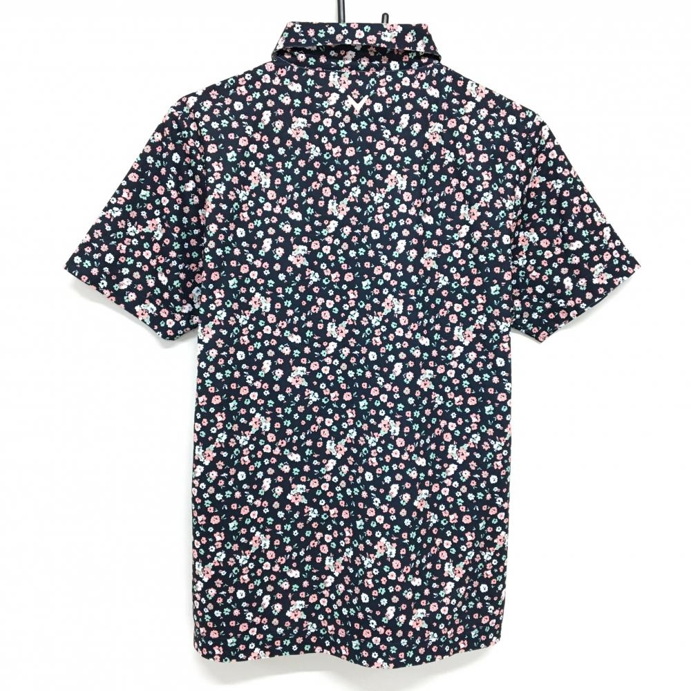 【美品】キャロウェイ 半袖ポロシャツ ダークネイビー×ピンク×ミントグリーン 小花柄 メンズ L ゴルフウェア Callaway