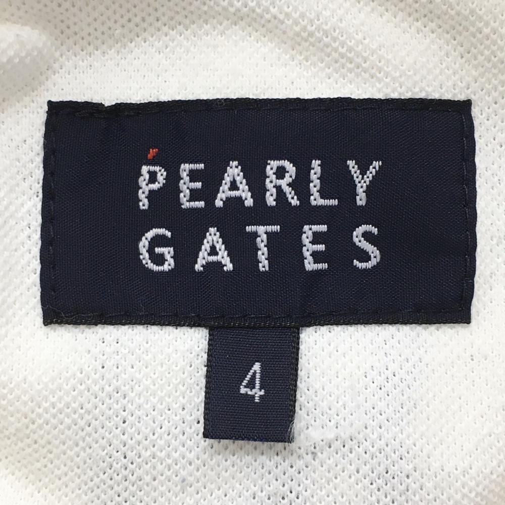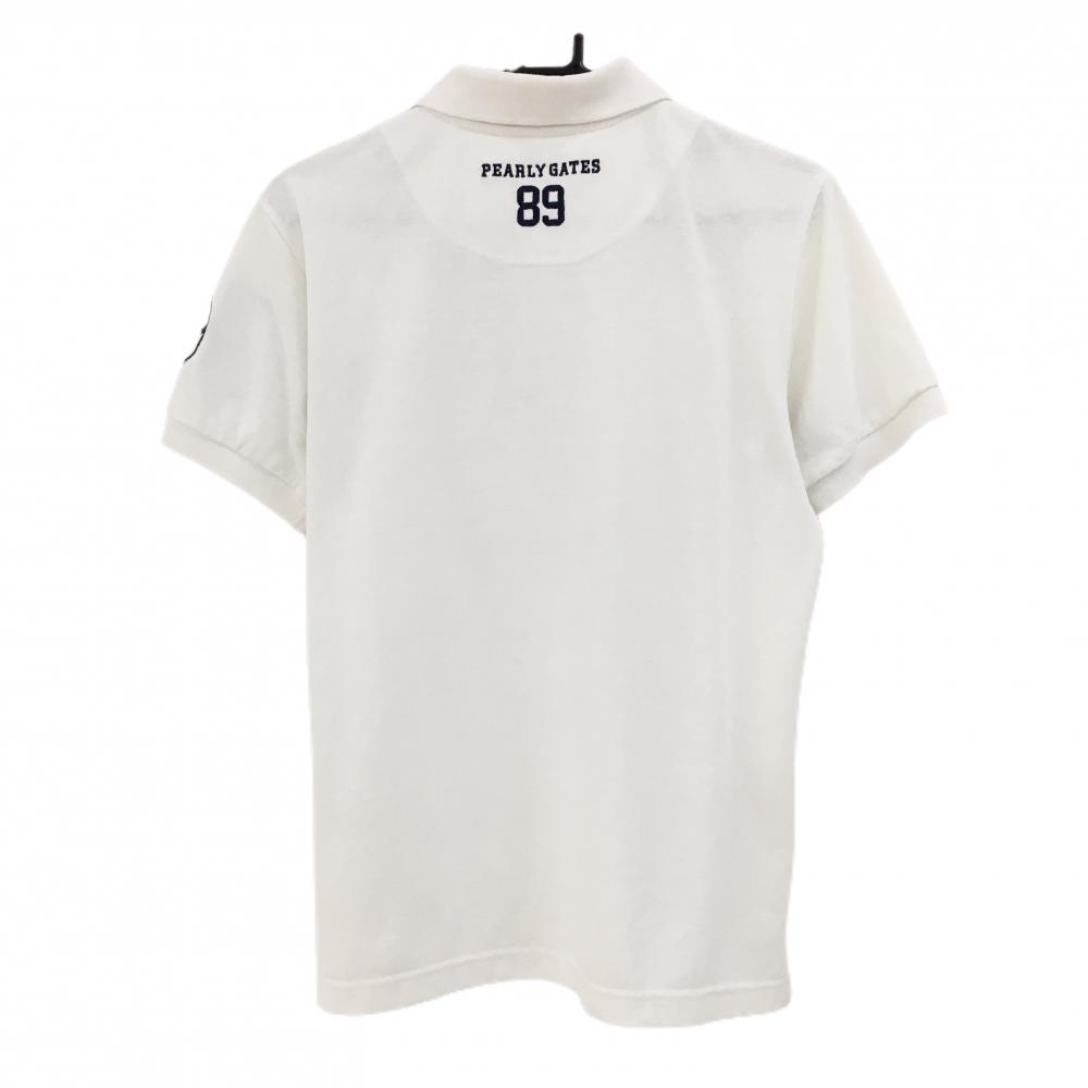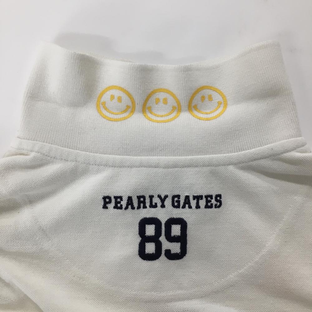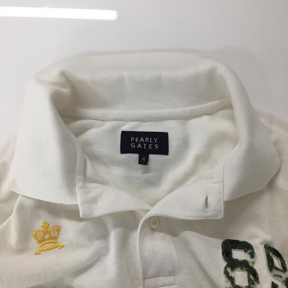 パーリーゲイツ 半袖ポロシャツ 白×グリーン系 フロントロゴ迷彩調 襟裏ニコちゃん スマイル メンズ 4(M) ゴルフウェア PEARLY GATES