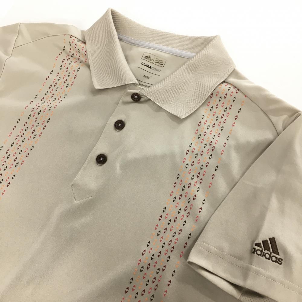 【美品】アディダス 半袖ポロシャツ ベージュ×レッド系×オレンジ 一部柄 メンズ M/M ゴルフウェア adidas