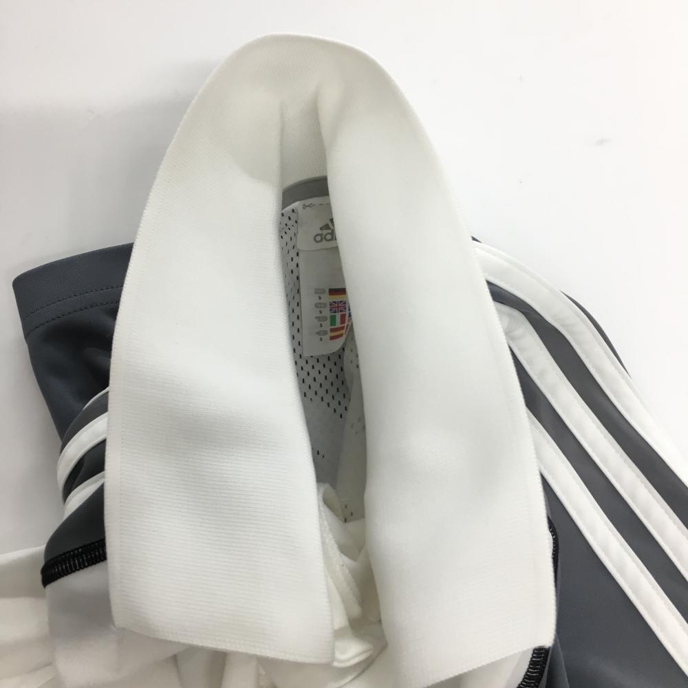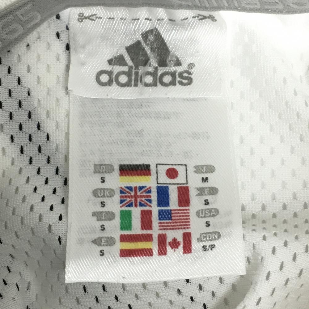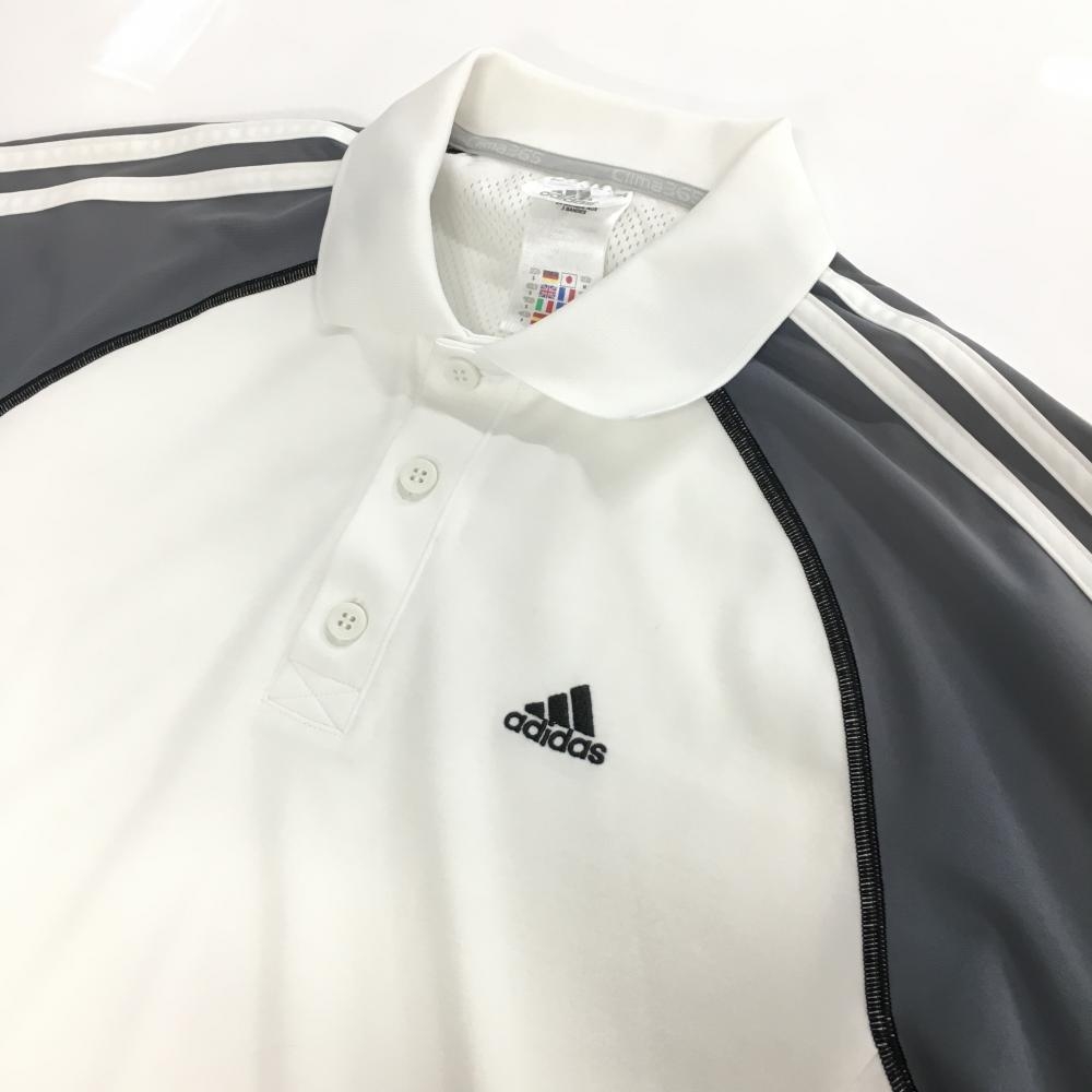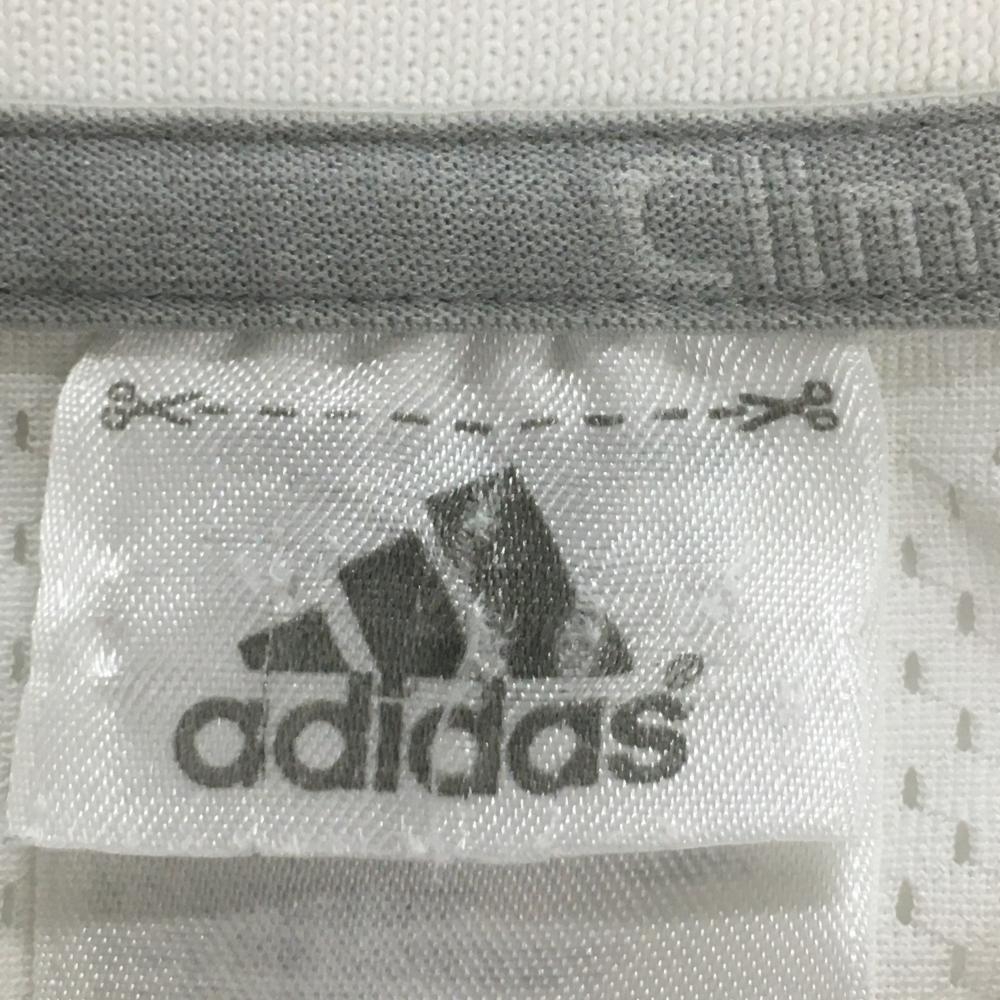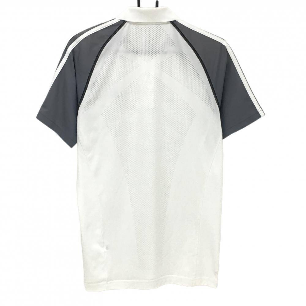 アディダス 半袖ポロシャツ 白×グレー 後ろ一部メッシュ 肩3ライン 地模様 メンズ M ゴルフウェア adidas