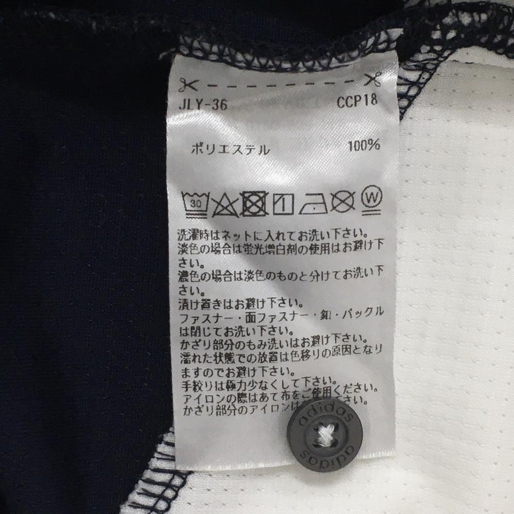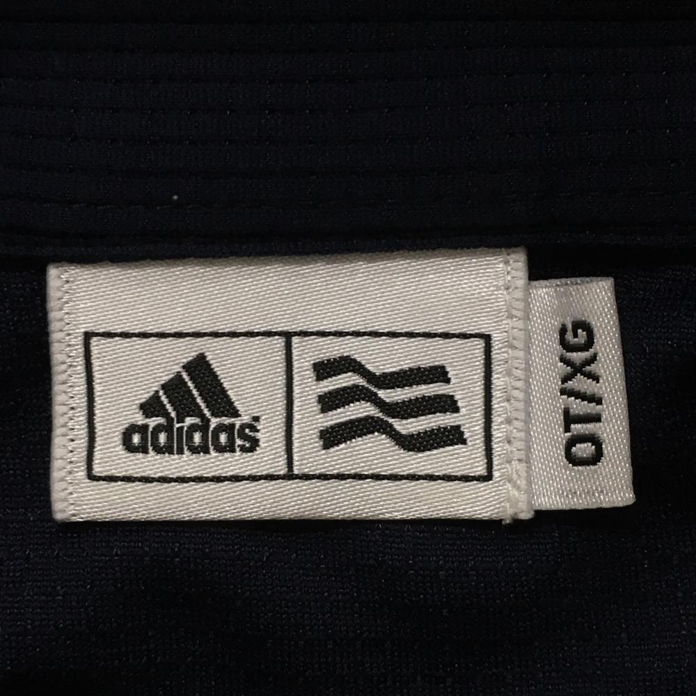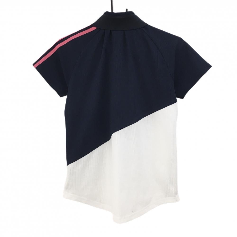 アディダス 半袖ポロシャツ ネイビー×白 メッシュ調生地 バイカラー 襟裏ボーダー レディース OT/XG ゴルフウェア adidas