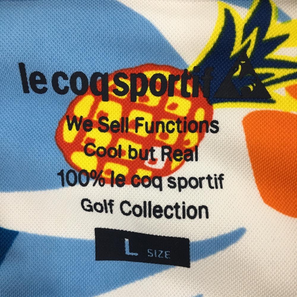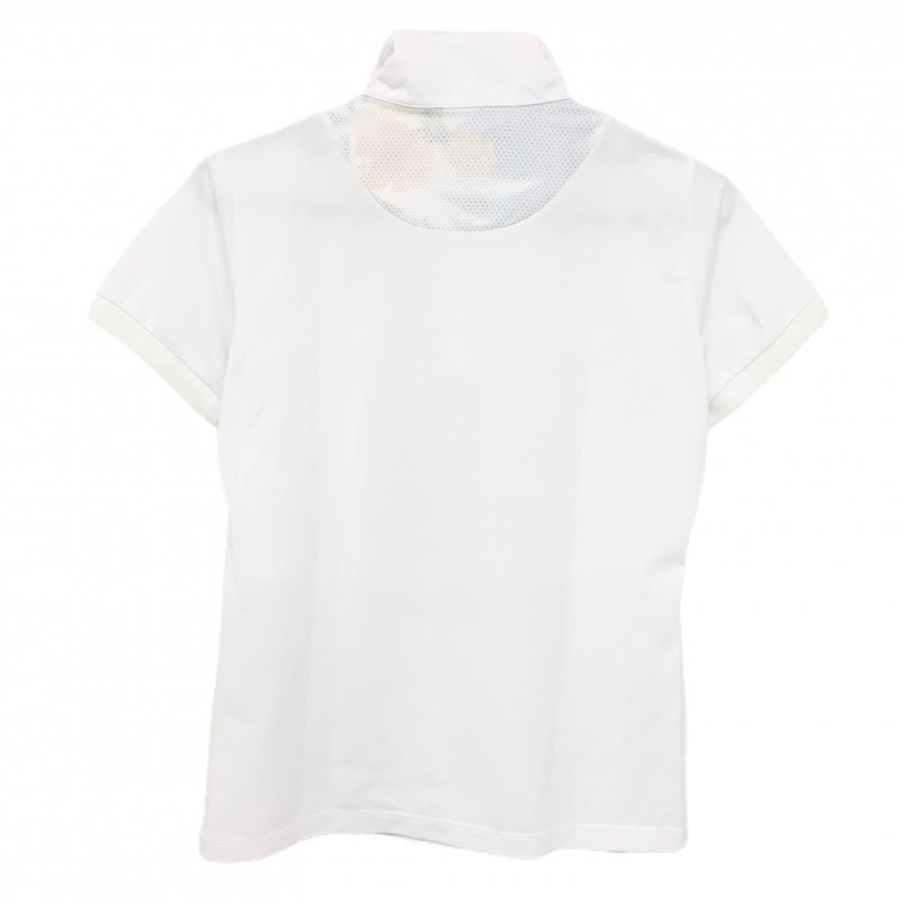 【美品】ルコックゴルフ 半袖ハイネックシャツ 白 フロント夕景プリント ハーフジップ レディース L ゴルフウェア le coq sportif