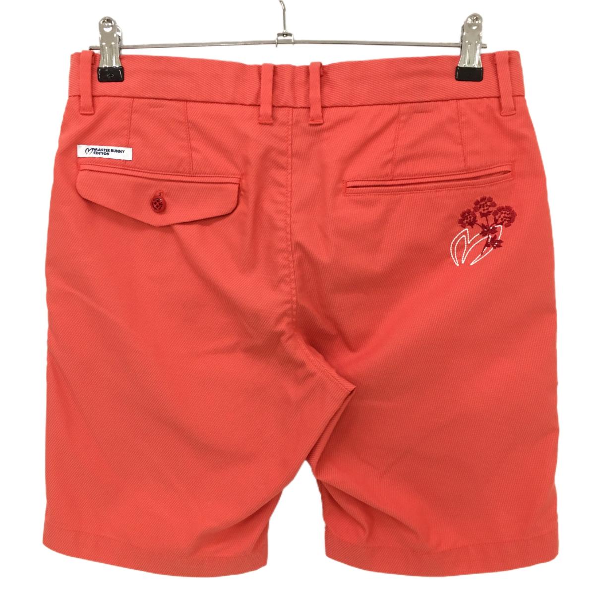 マスターバニー ハーフパンツ サーモンピンク 斜めストライプ地模様 ロゴ白 ストレッチ メンズ 4(M) ゴルフウェア MASTER BUNNY EDITION