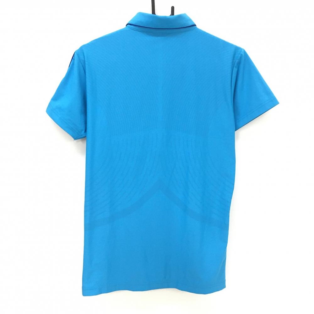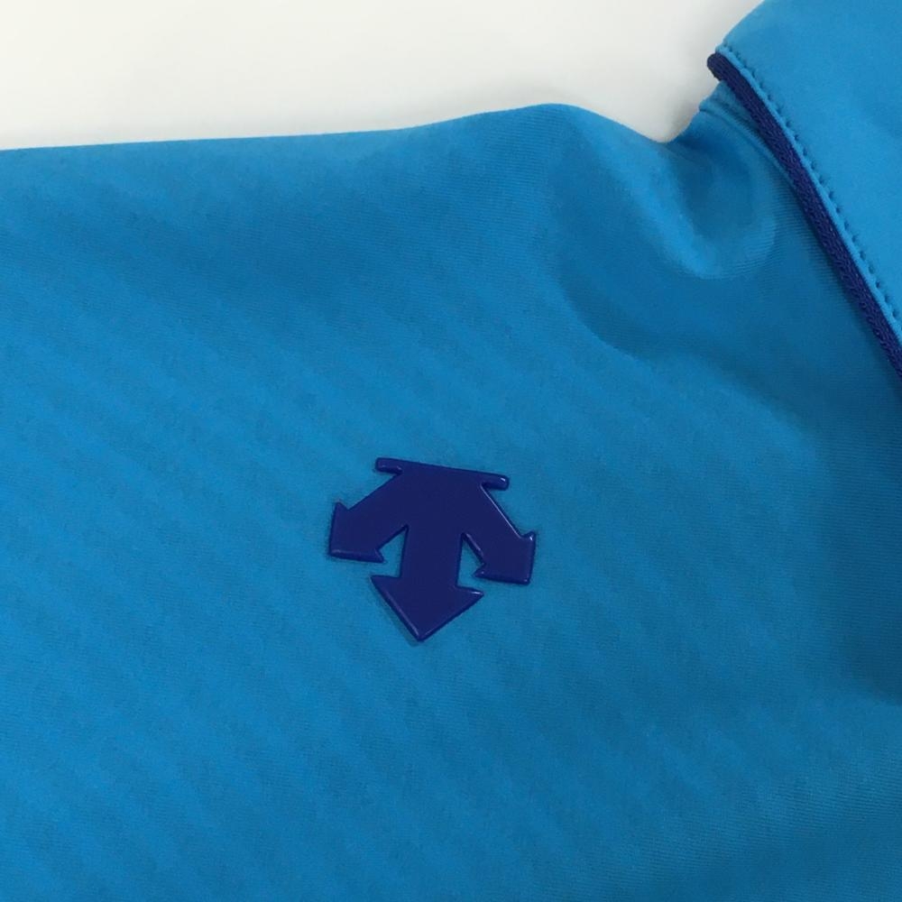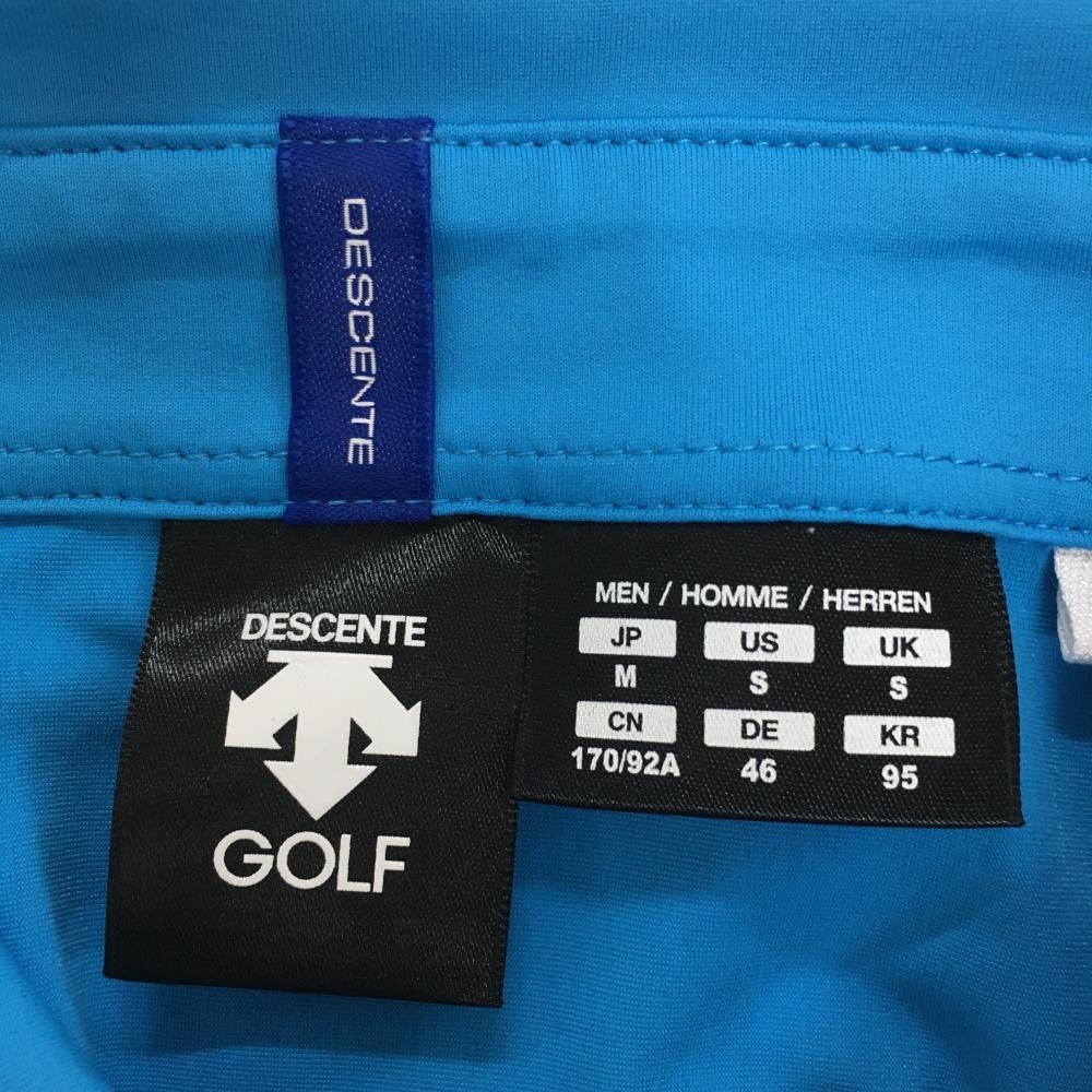 【超美品】デサントゴルフ 半袖ポロシャツ ライトブルー×ブルー 地模様 ハーフジップ 中田英寿 メンズ M ゴルフウェア DESCENTE