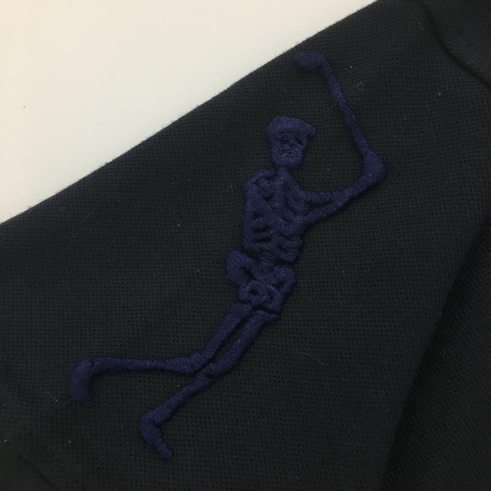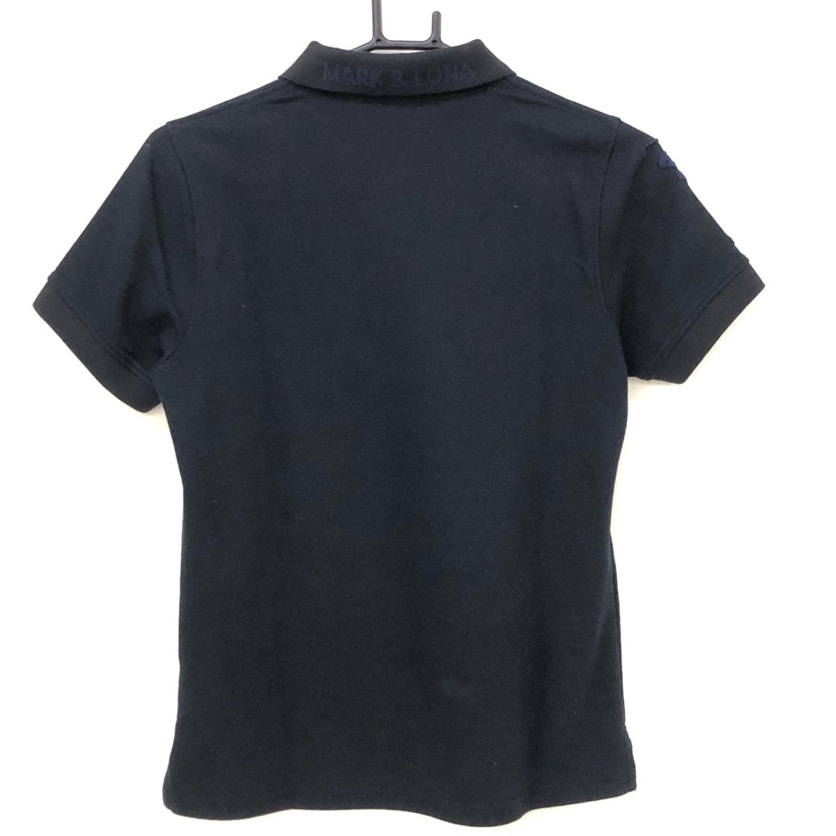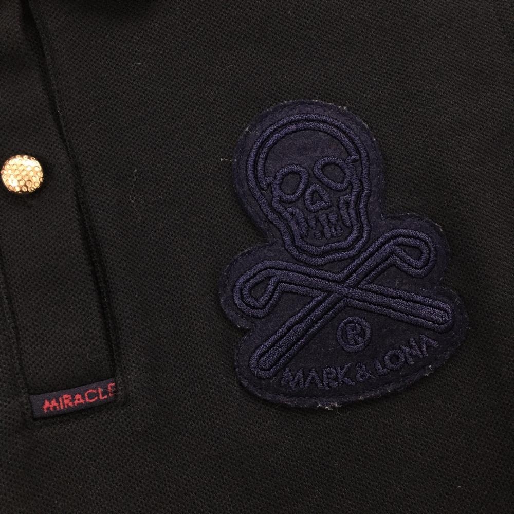【超美品】マークアンドロナ 半袖ポロシャツ 黒 ワッペンネイビー 襟ロゴ スカル レディース 38(M) ゴルフウェア MARK&LONA