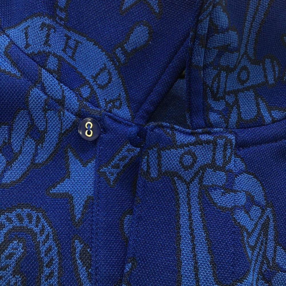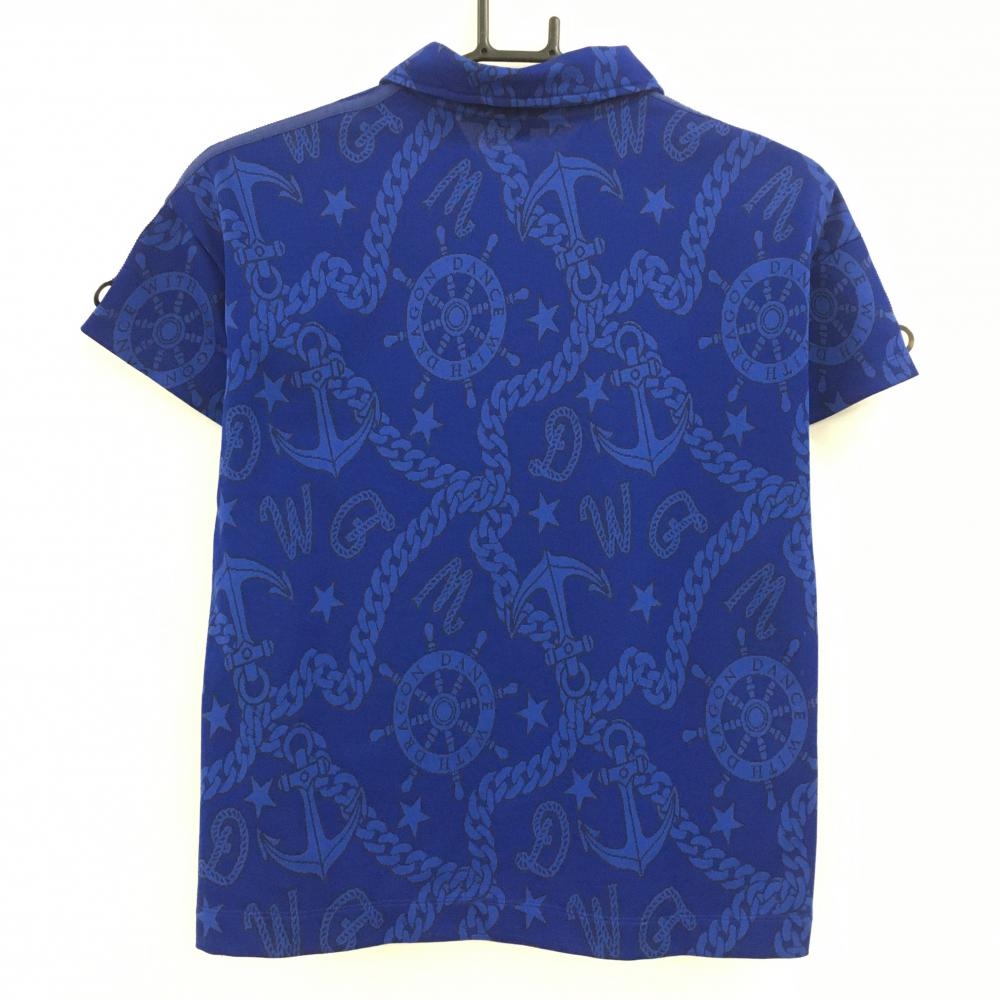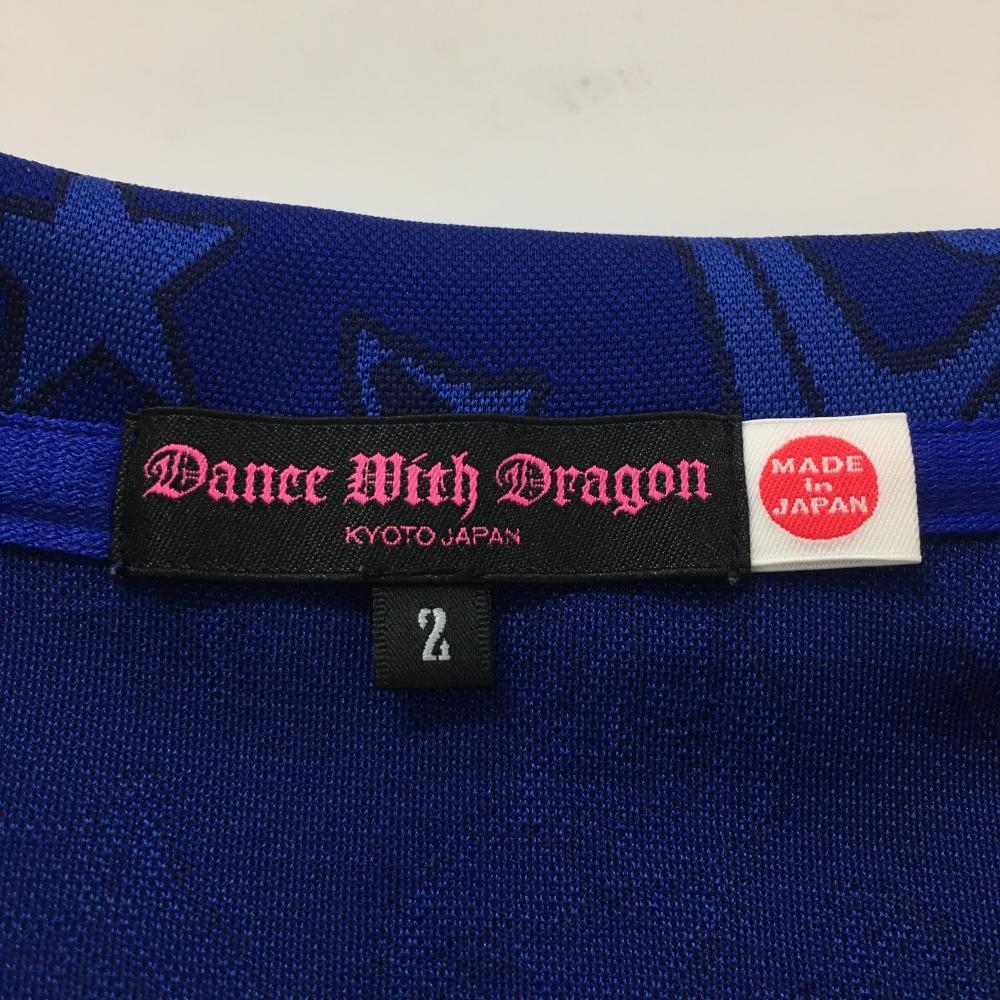 【超美品】ダンスウィズドラゴン 半袖ポロシャツ ネイビー×ブルー レディース 2(M) ゴルフウェア Dance With Dragon