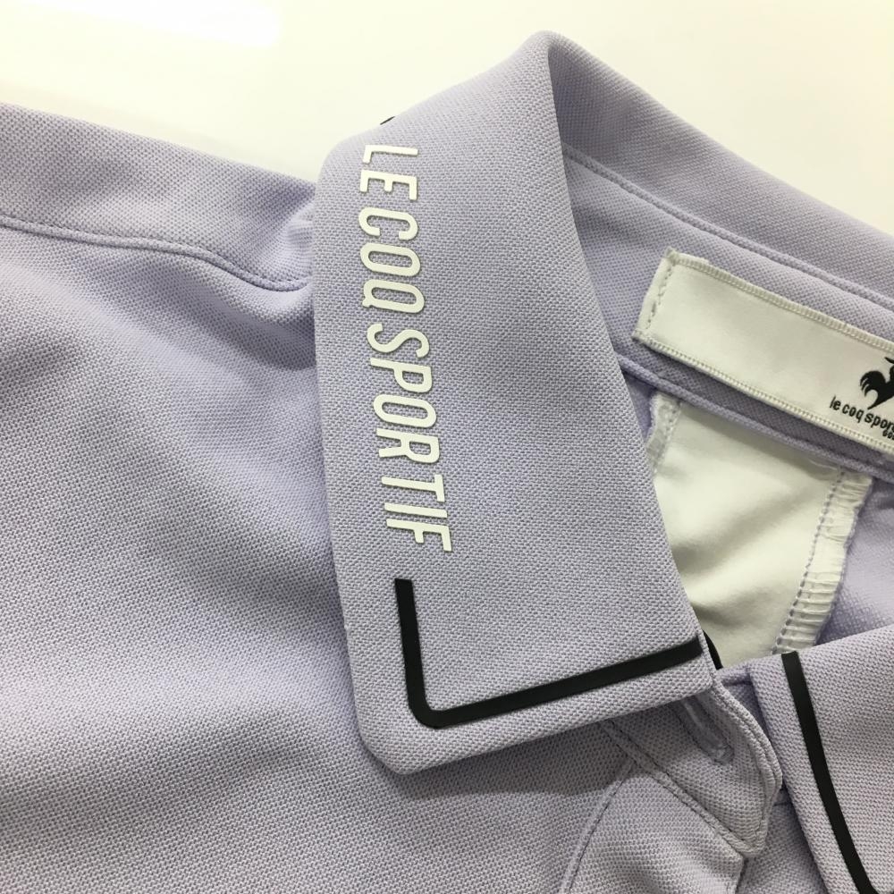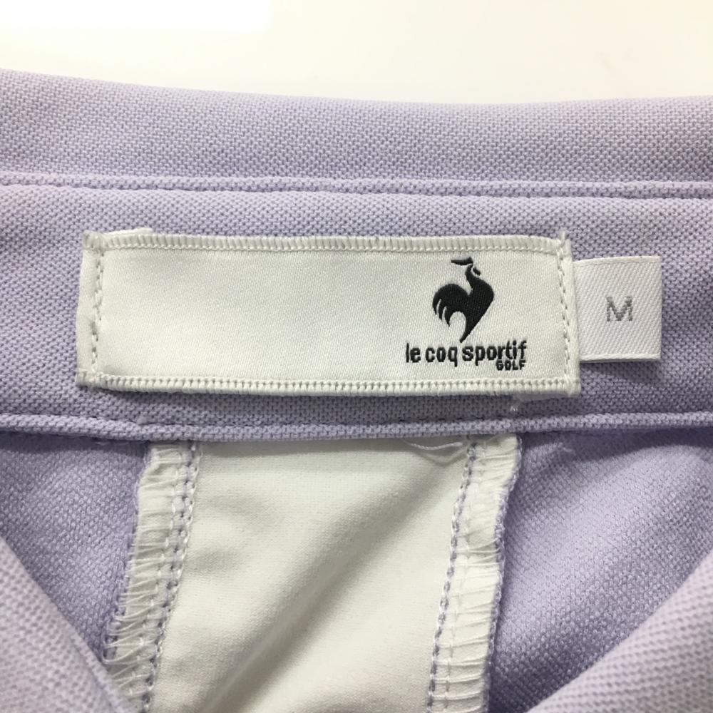 【超美品】ルコックゴルフ 半袖ポロシャツ ライトパープル×白 襟ロゴ レディース M ゴルフウェア 2023年モデル le coq sportif