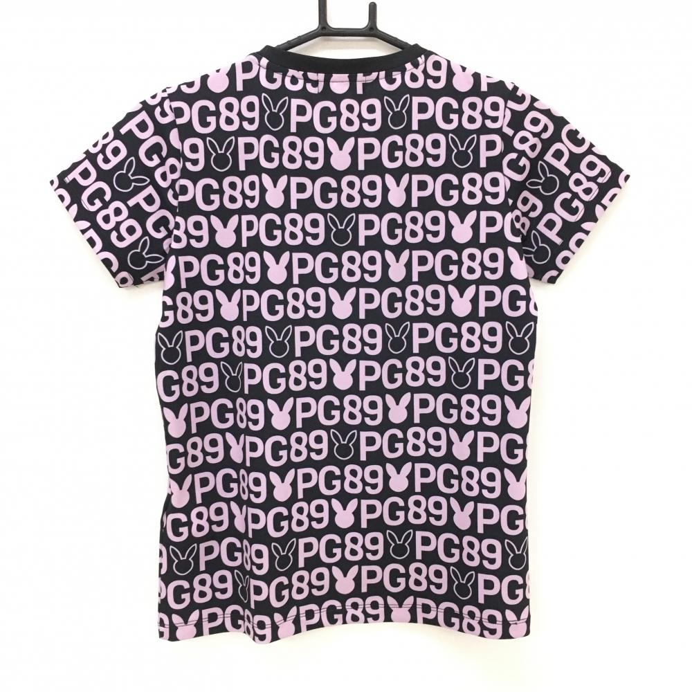 【超美品】パーリーゲイツ Tシャツ ダークネイビー×ライトパープル ロゴ総柄 韓国モデル レディース 0(S) ゴルフウェア PEARLY GATES