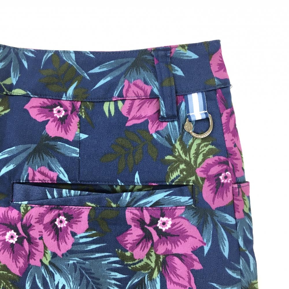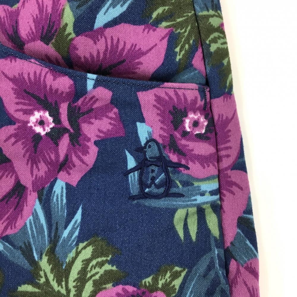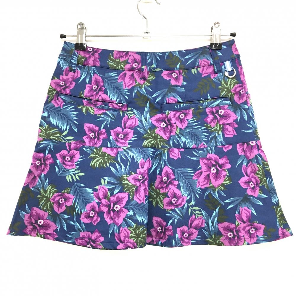 【超美品】マンシングウェア スカート ネイビー×パープル 花柄 リーフ柄 レディース 7 ゴルフウェア Munsingwear