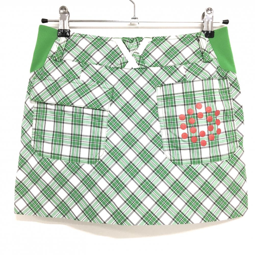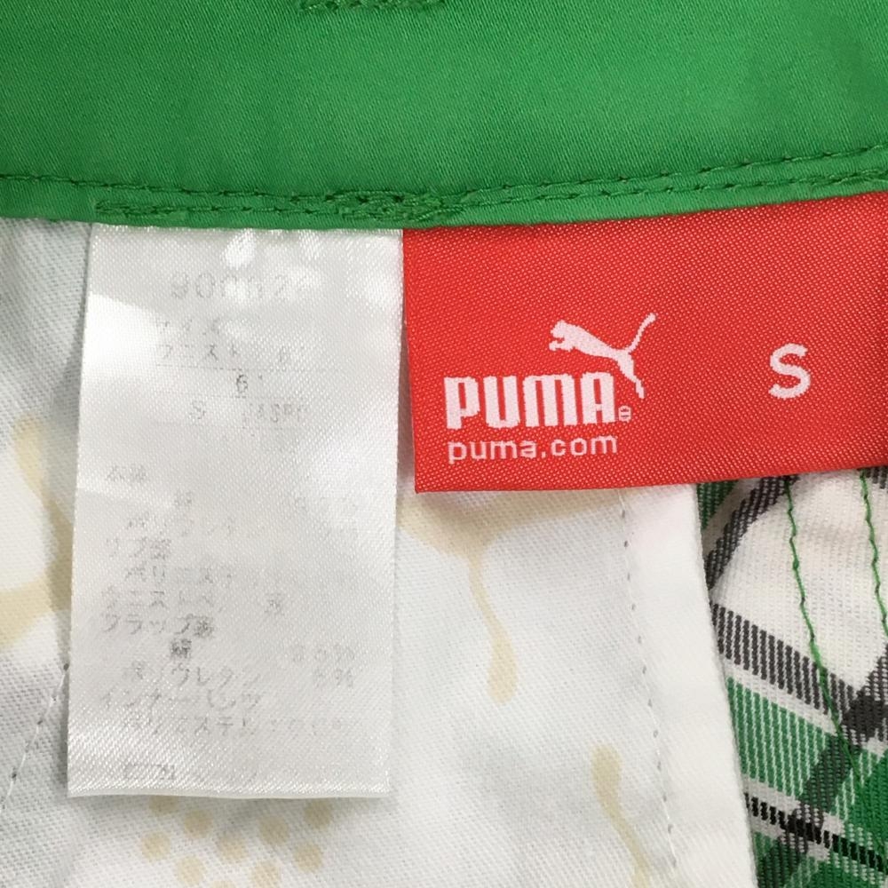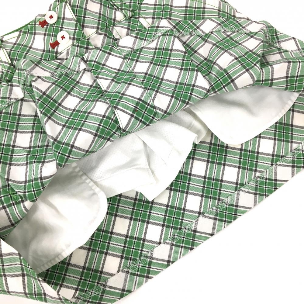 【超美品】プーマ スカート 白×グリーン チェック 一部プリーツ サイドウエストゴム インナーパンツ付 レディース S ゴルフウェア PUMA