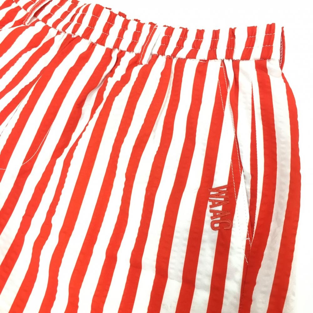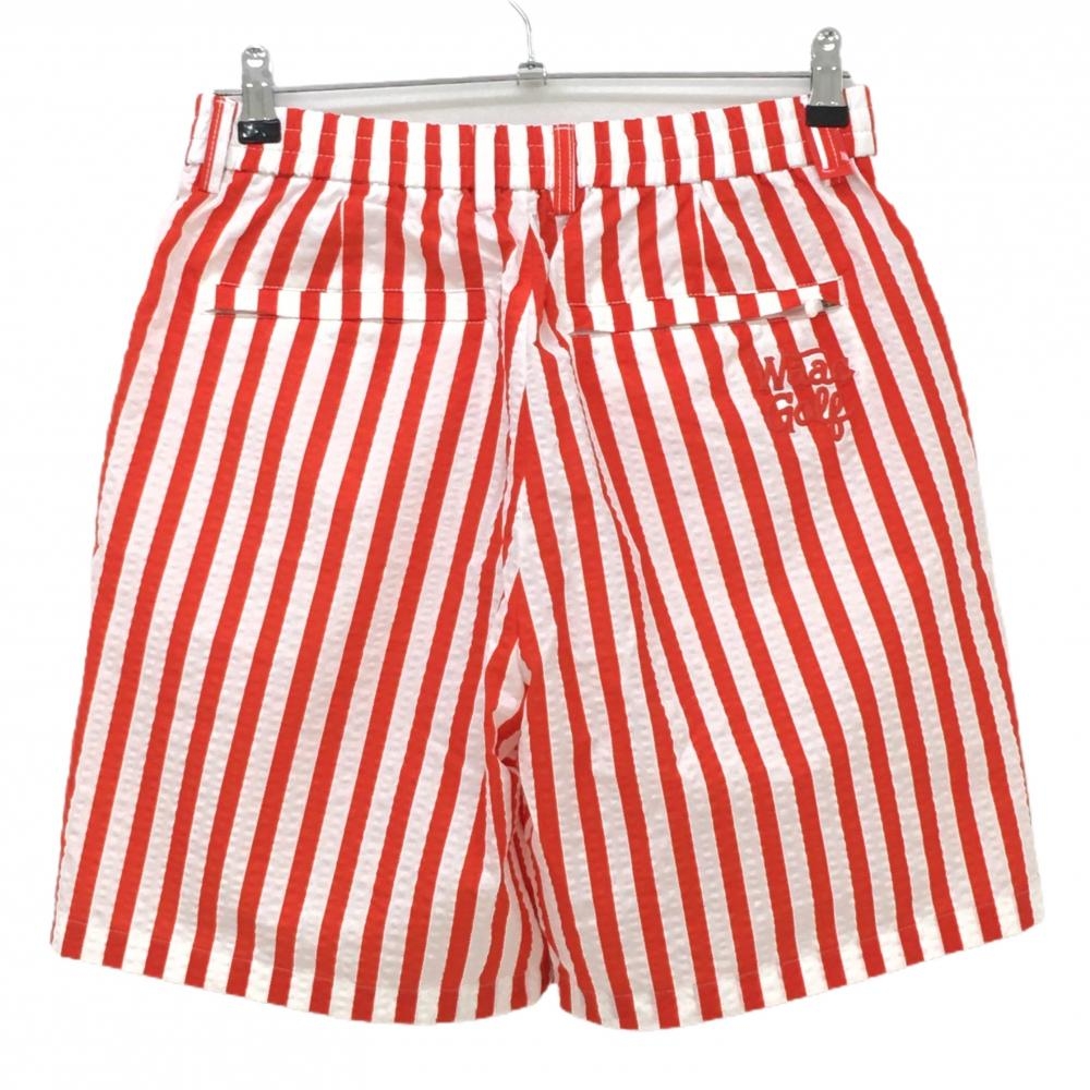 【超美品】ワック ハーフパンツ 白×レッド ストライプ サッカー生地 ウエストゴム メンズ 1(S) ゴルフウェア 2023年モデル WAAC