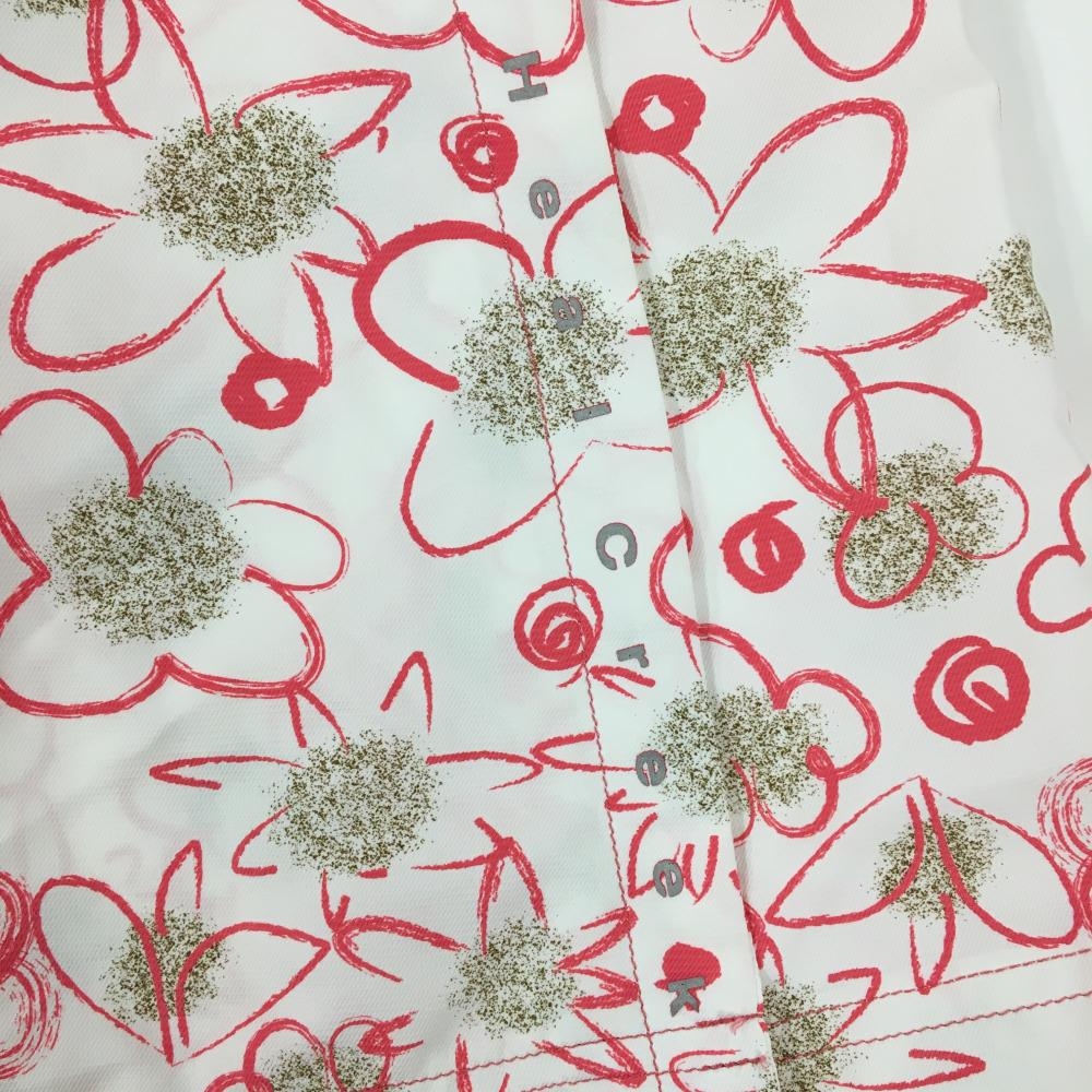 【超美品】ヒールクリーク ラップスカート 白×ピンク 花柄 レディース 40(M) ゴルフウェア Heal Creek