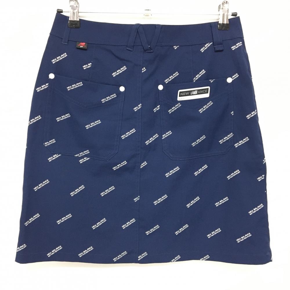 【超美品】ニューバランスゴルフ スカート ネイビー×白 ロゴ総柄 ストレッチ レディース 1(M) ゴルフウェア New Balance