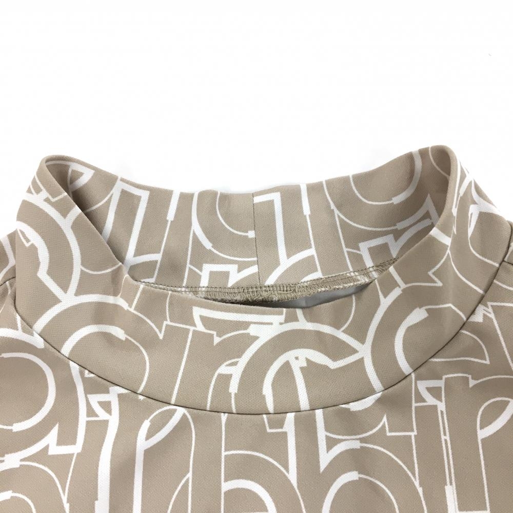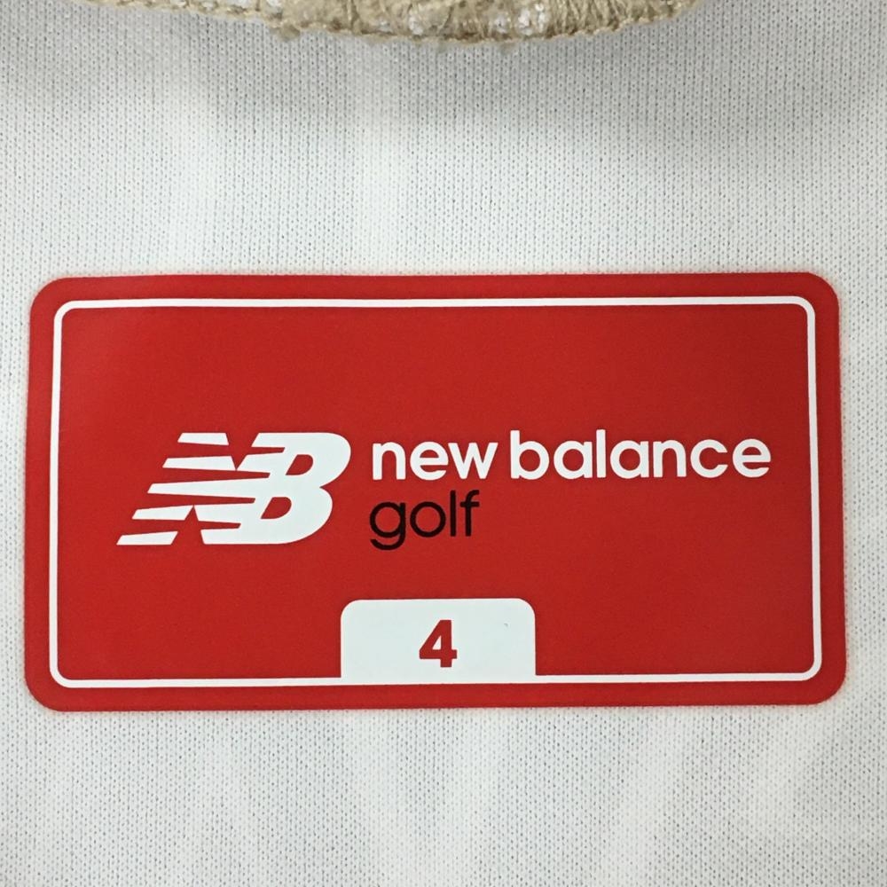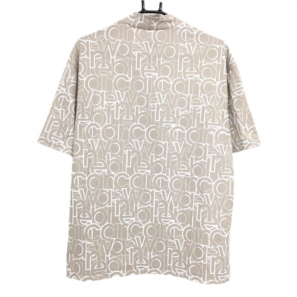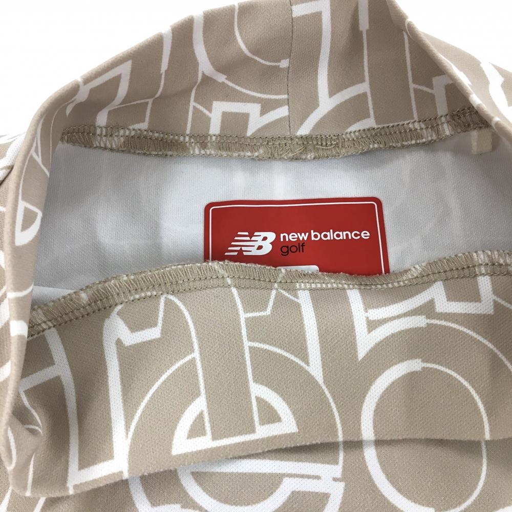 【美品】ニューバランスゴルフ 半袖ハイネックシャツ ベージュ×白 ロゴ総柄 メンズ 4(M) ゴルフウェア 2023年モデル New Balance