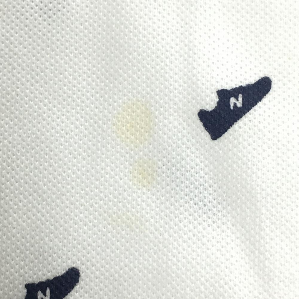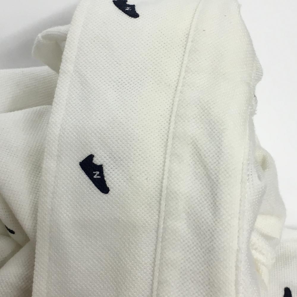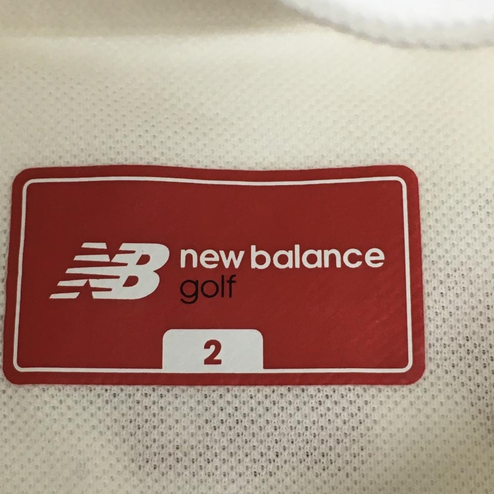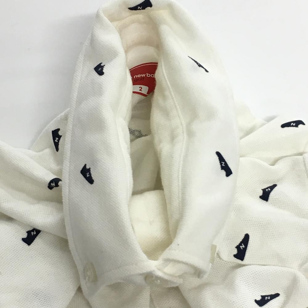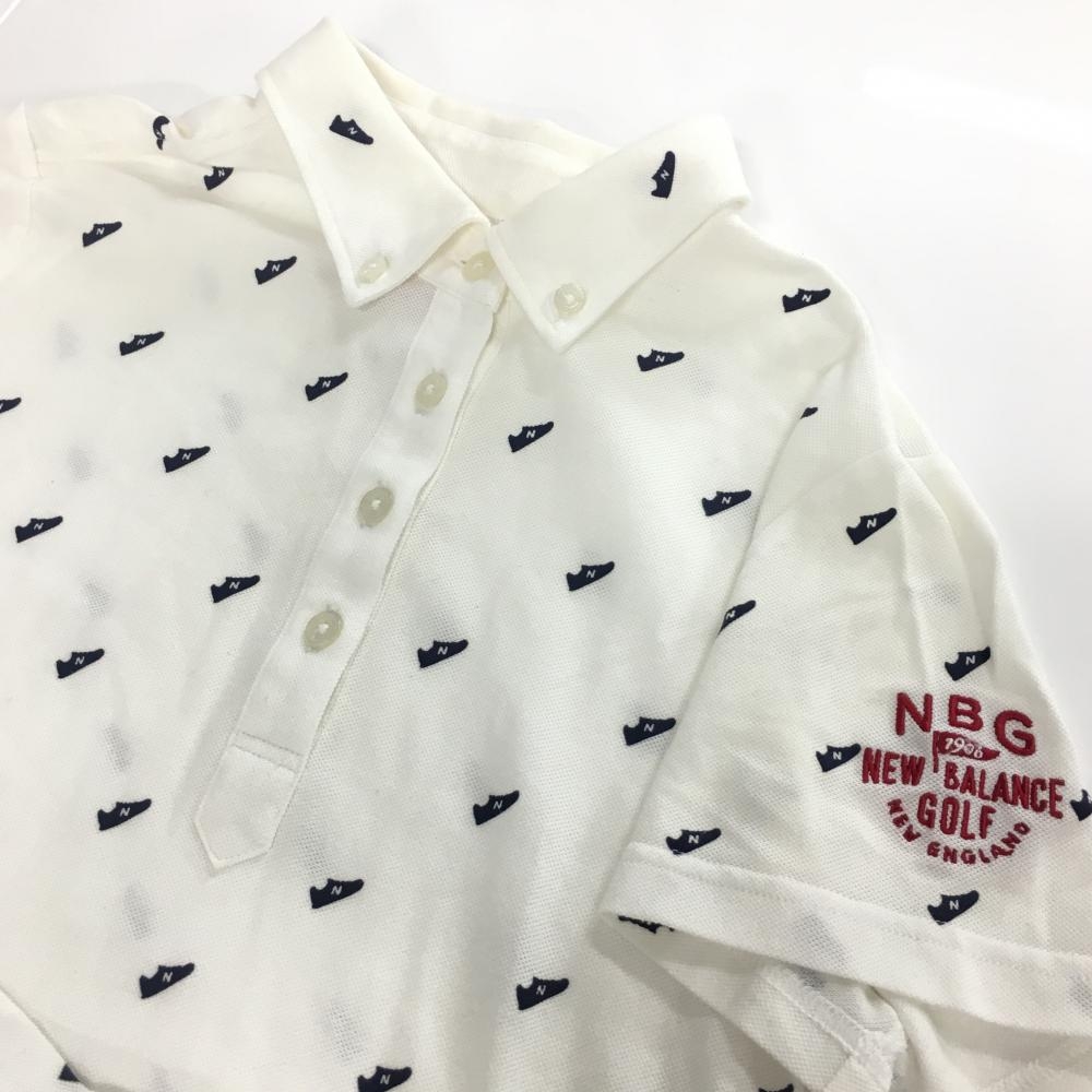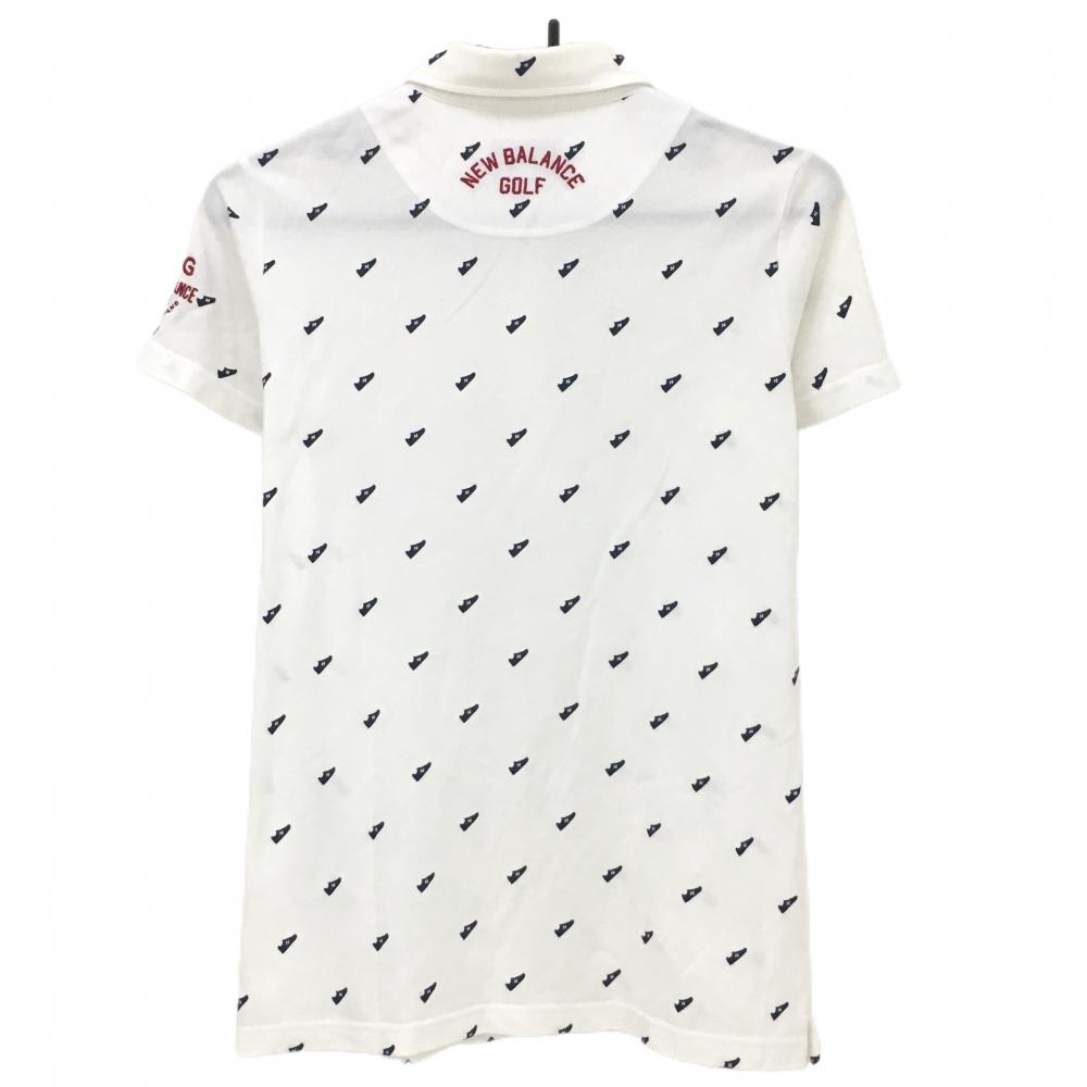 ニューバランスゴルフ 半袖ポロシャツ 白×ネイビー シューズ総柄 ボタンダウン レディース 2(L) ゴルフウェア New Balance