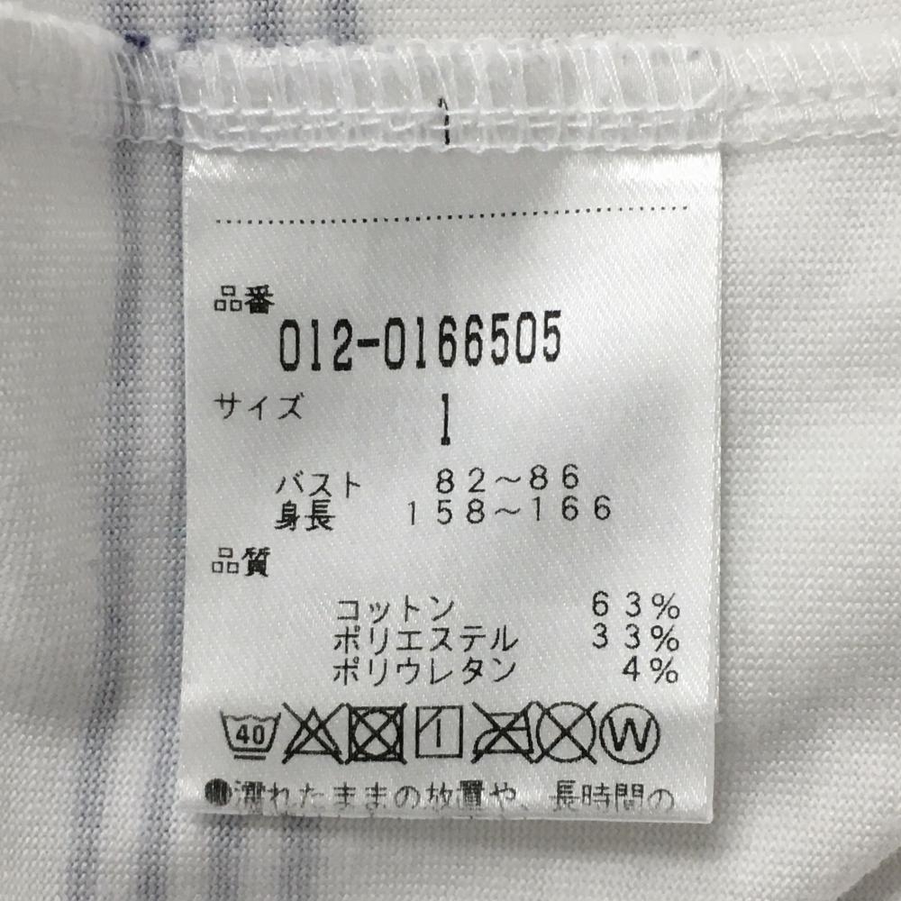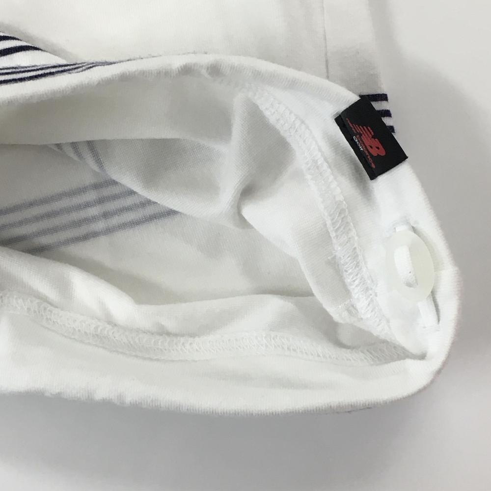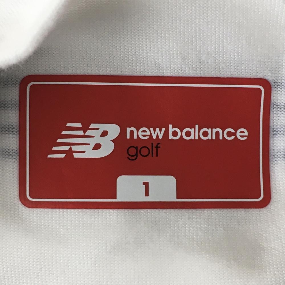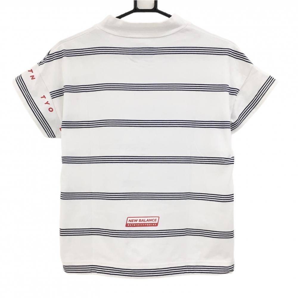 【超美品】ニューバランスゴルフ 半袖ハイネックシャツ 白×ネイビー ボーダー ロゴレッド レディース 1(M) ゴルフウェア New Balance