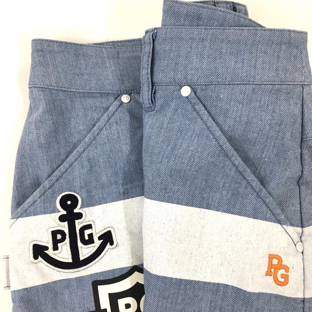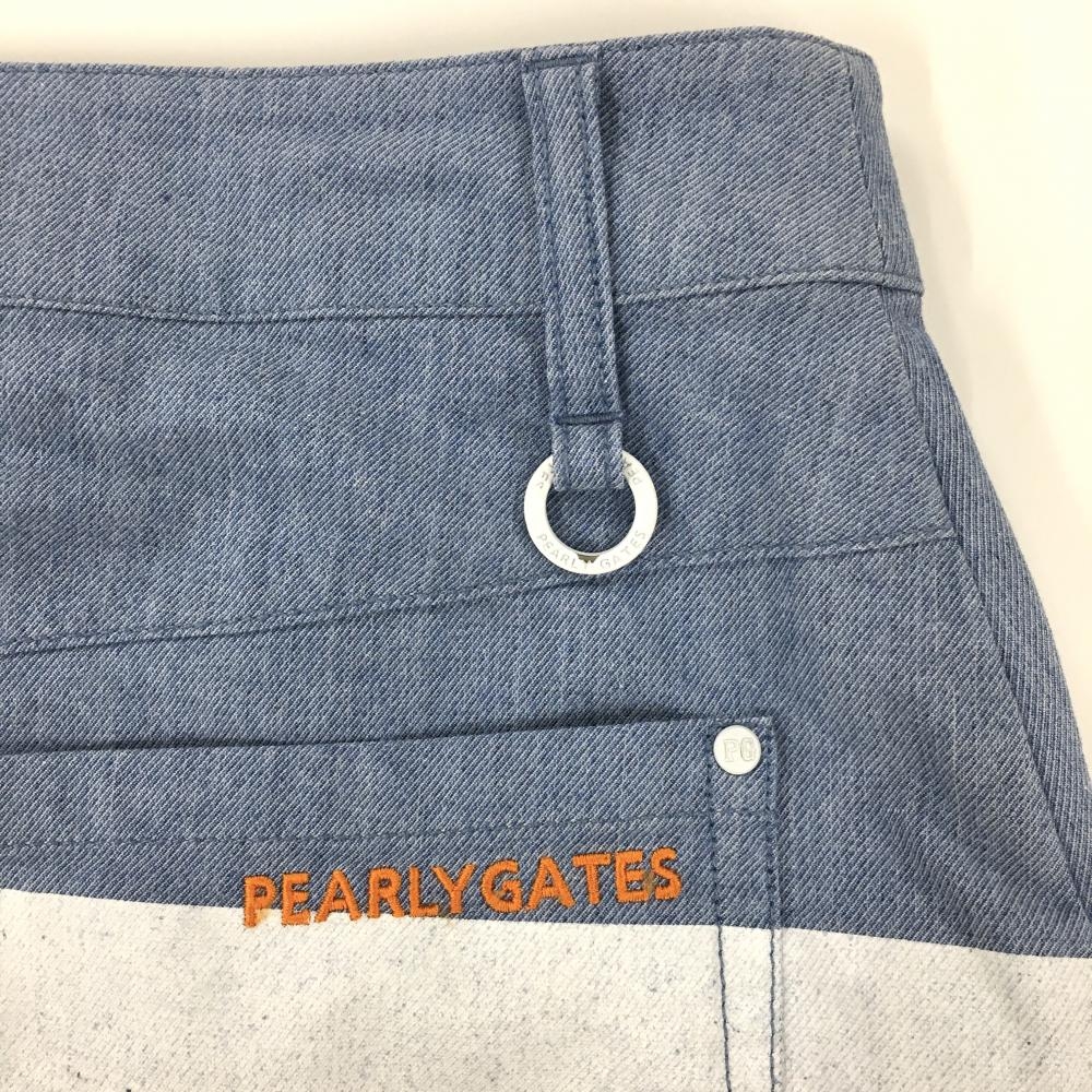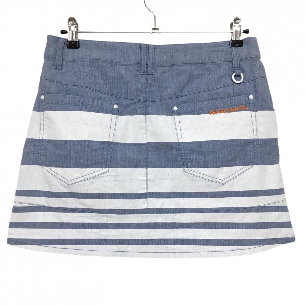 パーリーゲイツ スカート ライトブルー×白 下部ボーダー イカリマーク レディース 2(L) ゴルフウェア PEARLY GATES