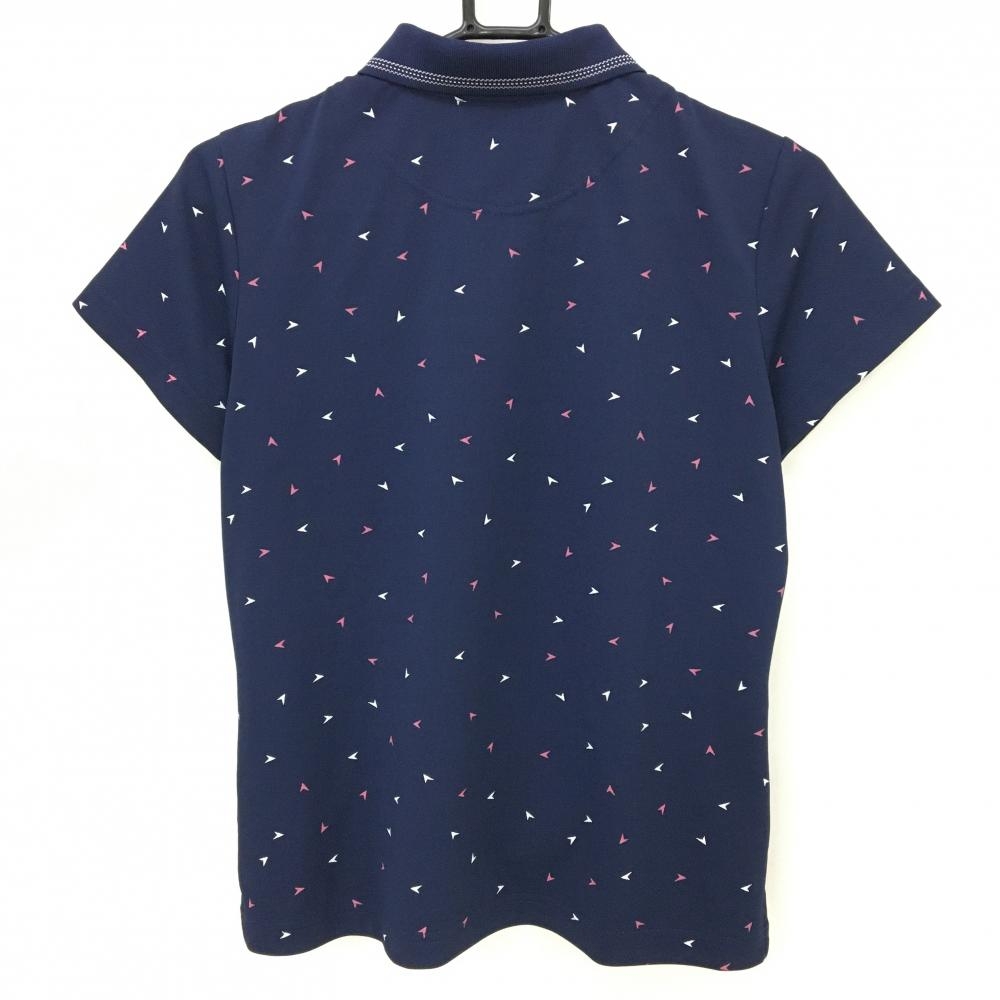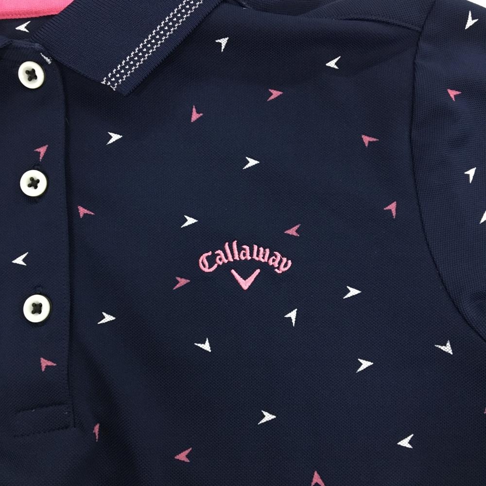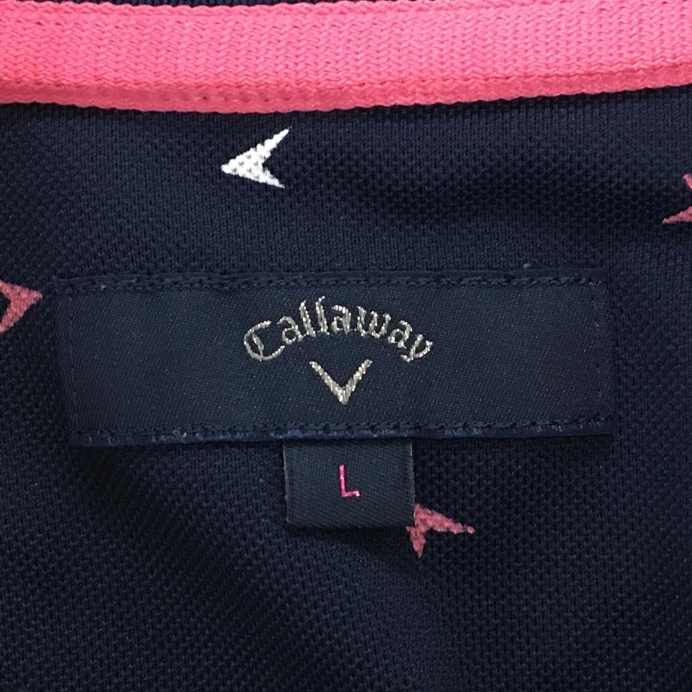 【超美品】キャロウェイ 半袖ポロシャツ ネイビー×白 総柄 ロゴ刺しゅう レディース L ゴルフウェア Callaway
