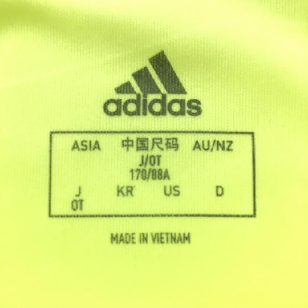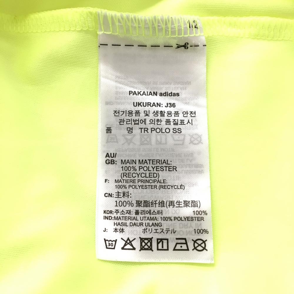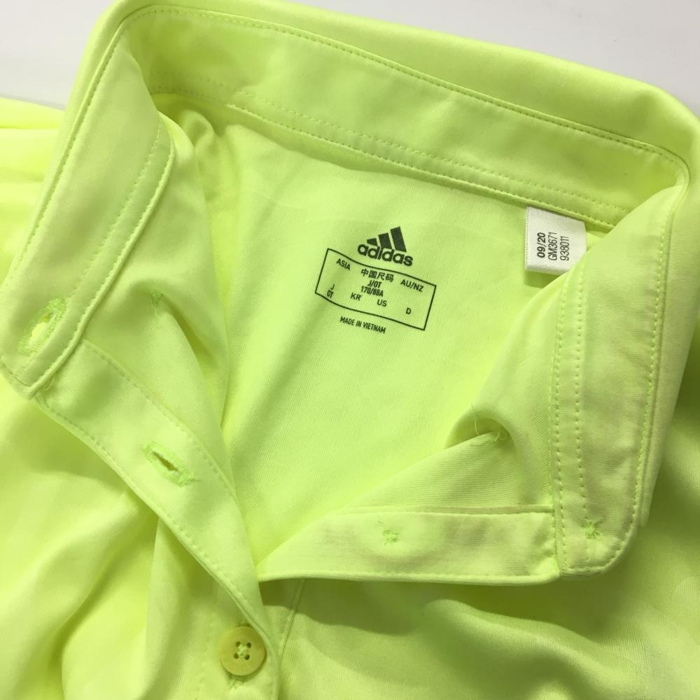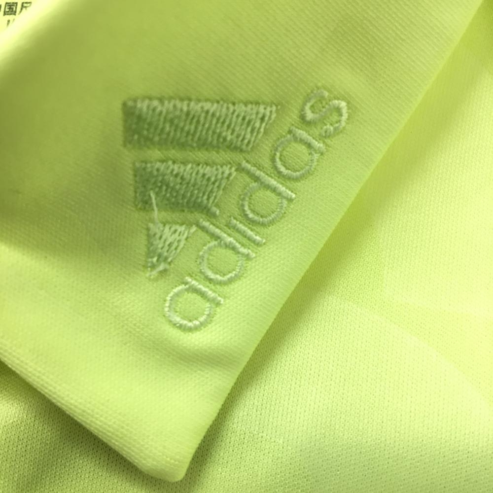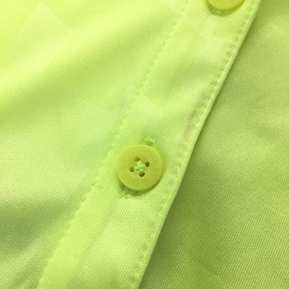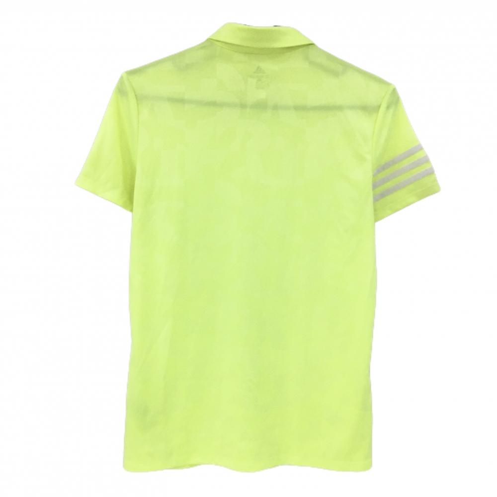 アディダス 半袖ポロシャツ 蛍光イエロー 総柄地模様 袖3ライン レディース OT(XL) ゴルフウェア adidas