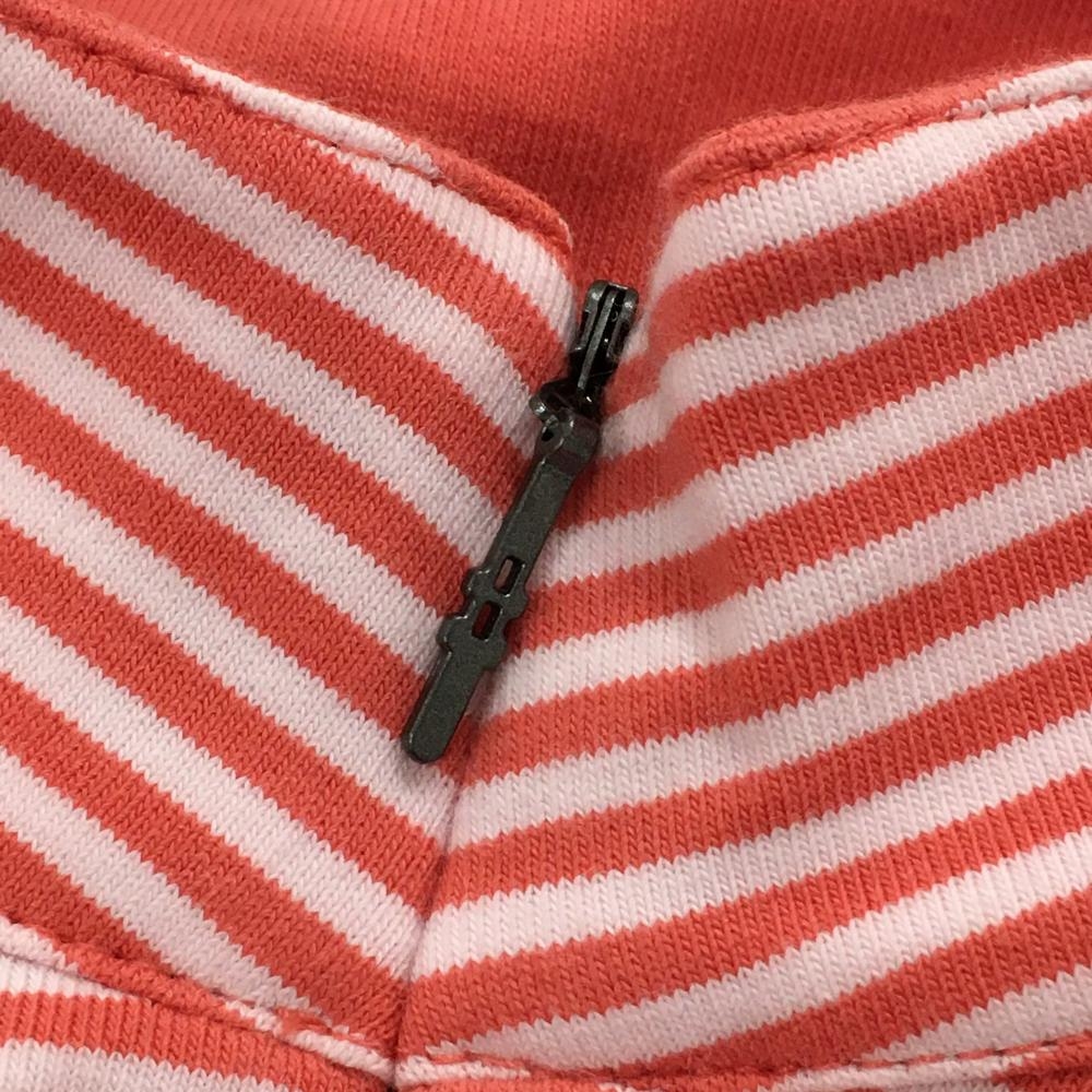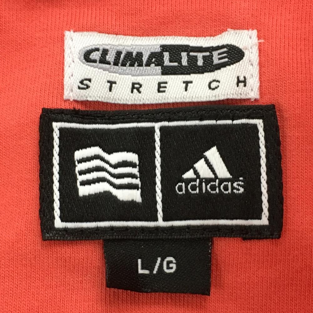 【美品】アディダス ノースリーブハイネックシャツ レッドピンク×白 ボーダー柄 ハーフジップ レディース L/G ゴルフウェア adidas