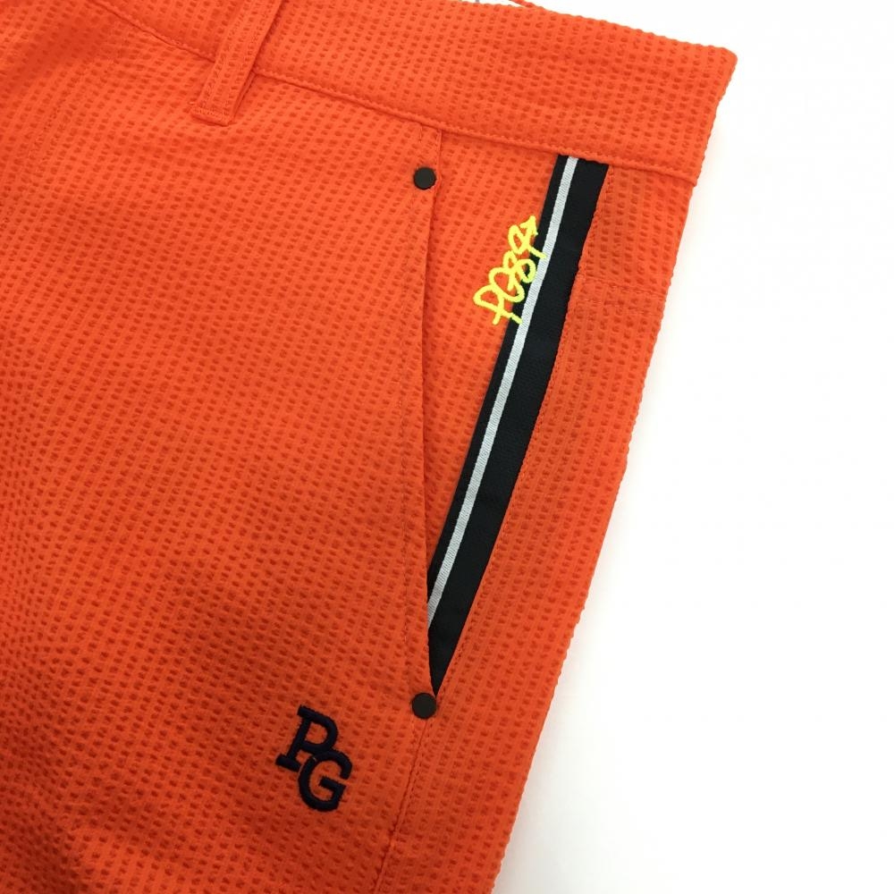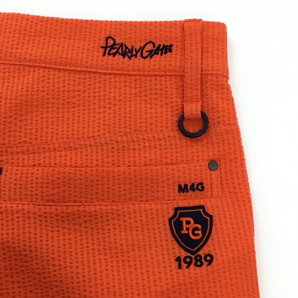 【超美品】パーリーゲイツ パンツ オレンジ ロゴネイビー サッカー生地 メンズ 4(M) ゴルフウェア 2024年モデル PEARLY GATES