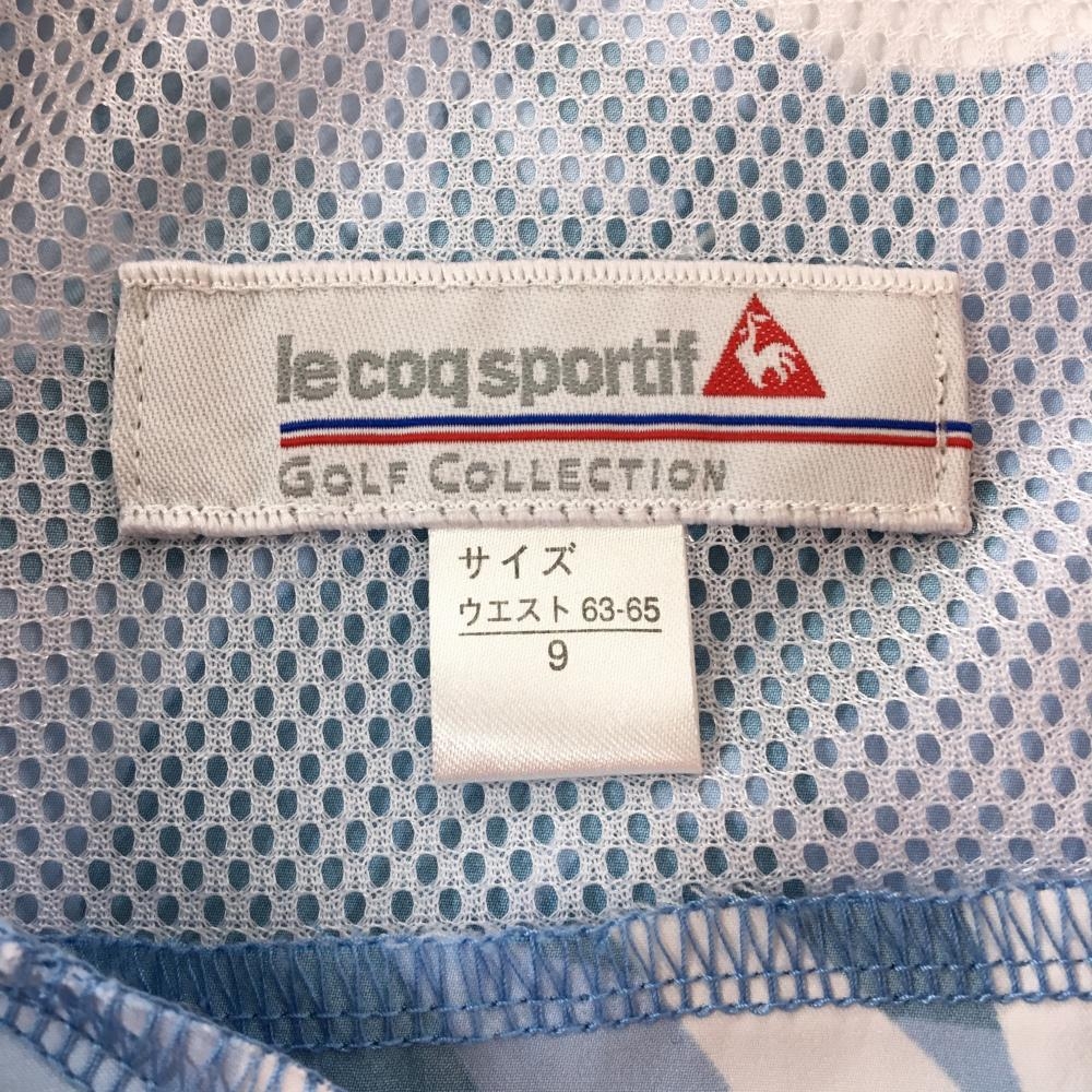 【超美品】ルコックゴルフ スカート ライトブルー×白×レッド 内側メッシュインナーパンツ レディース 9 ゴルフウェア le coq sportif