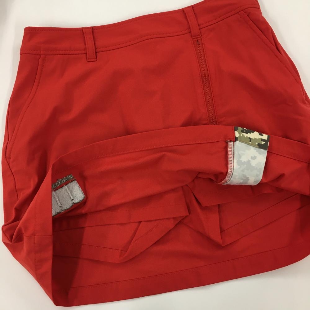 【超美品】マンシングウェア スカート レッド系 裾ロゴ刺しゅう ジップ 内側インナーパンツ レディース 7 ゴルフウェア Munsingwear