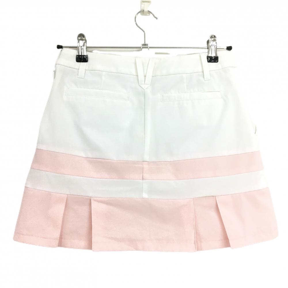 【美品】デサントゴルフ スカート 白×ピンク 裾プリーツ ストレッチ 中田英寿 内側インナーパンツ レディース 61/S ゴルフウェア DESCENTE