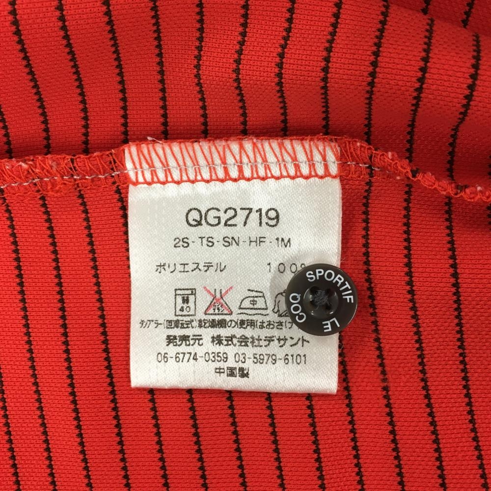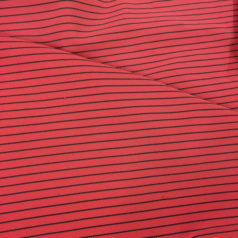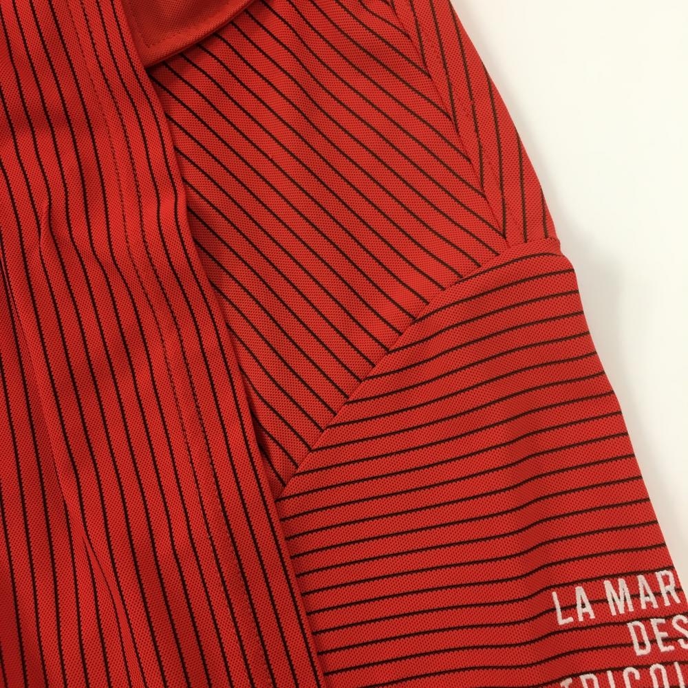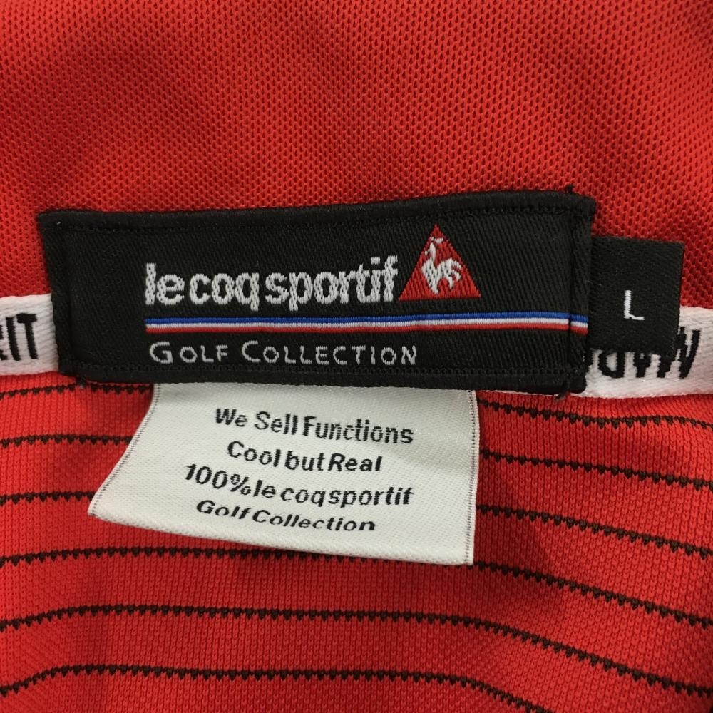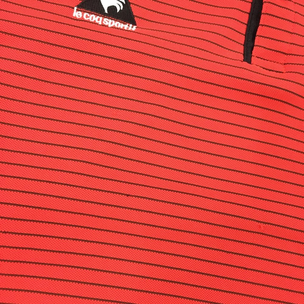 ルコックゴルフ 半袖ポロシャツ レッド×黒 細ボーダー ロゴ メンズ L ゴルフウェア le coq sportif