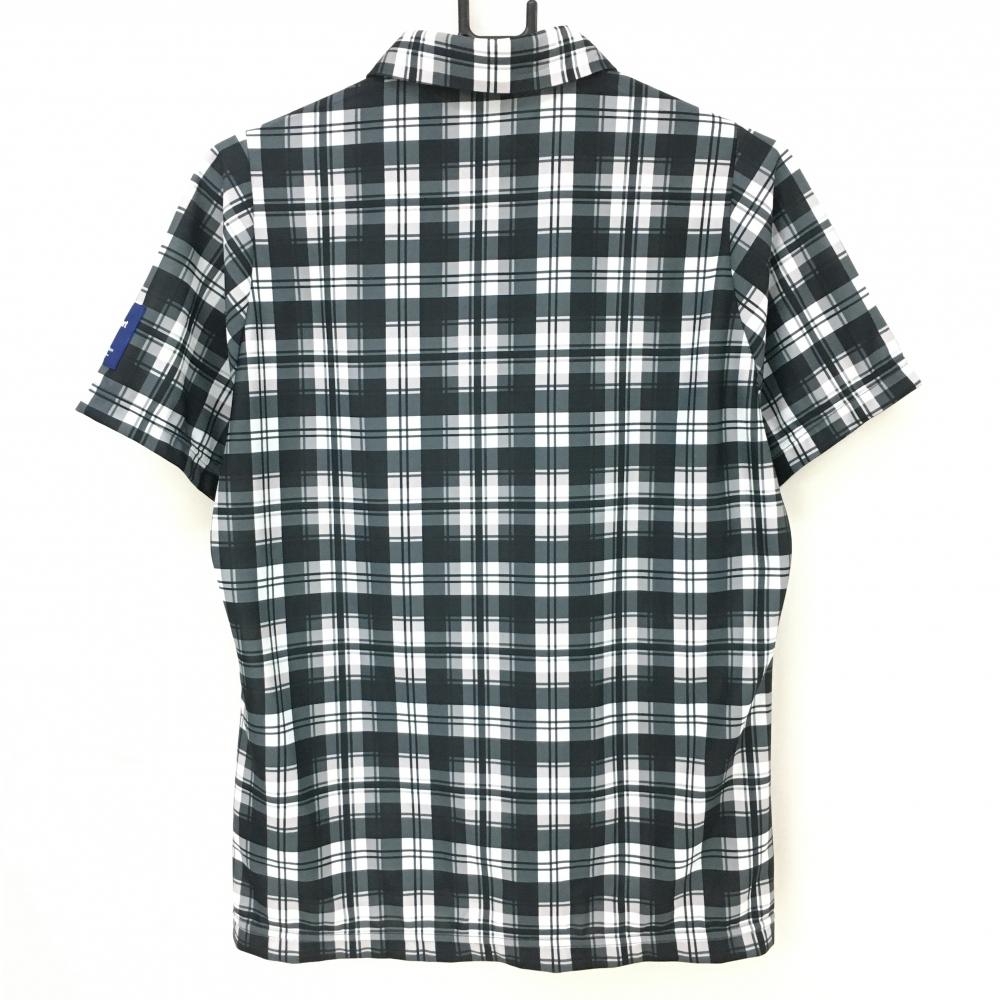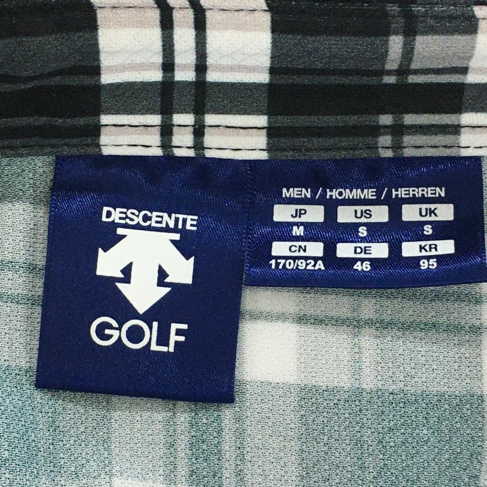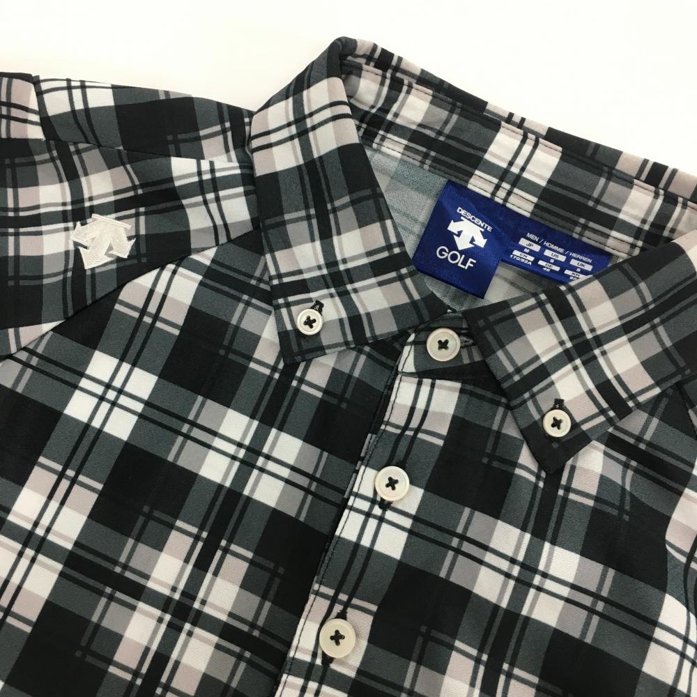 【超美品】デサントゴルフ 半袖ポロシャツ 黒×白 チェック ボタンダウン 中田英寿 メンズ M ゴルフウェア DESCENTE
