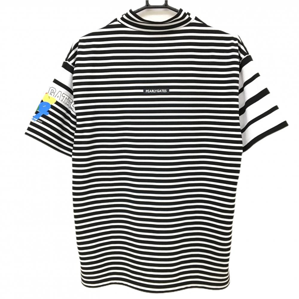 【超美品】パーリーゲイツ 半袖ハイネックシャツ 白×黒 ボーダー 35周年 メンズ 5(L) ゴルフウェア 2024年モデル PEARLY GATES