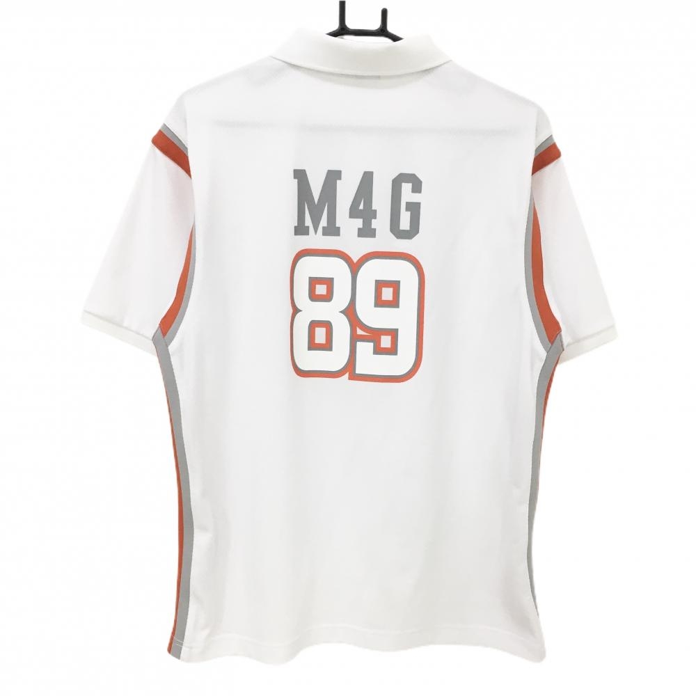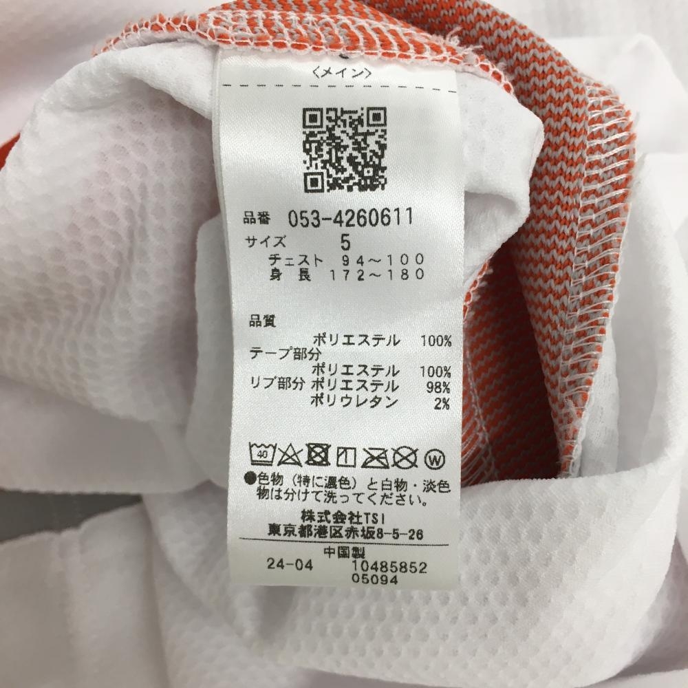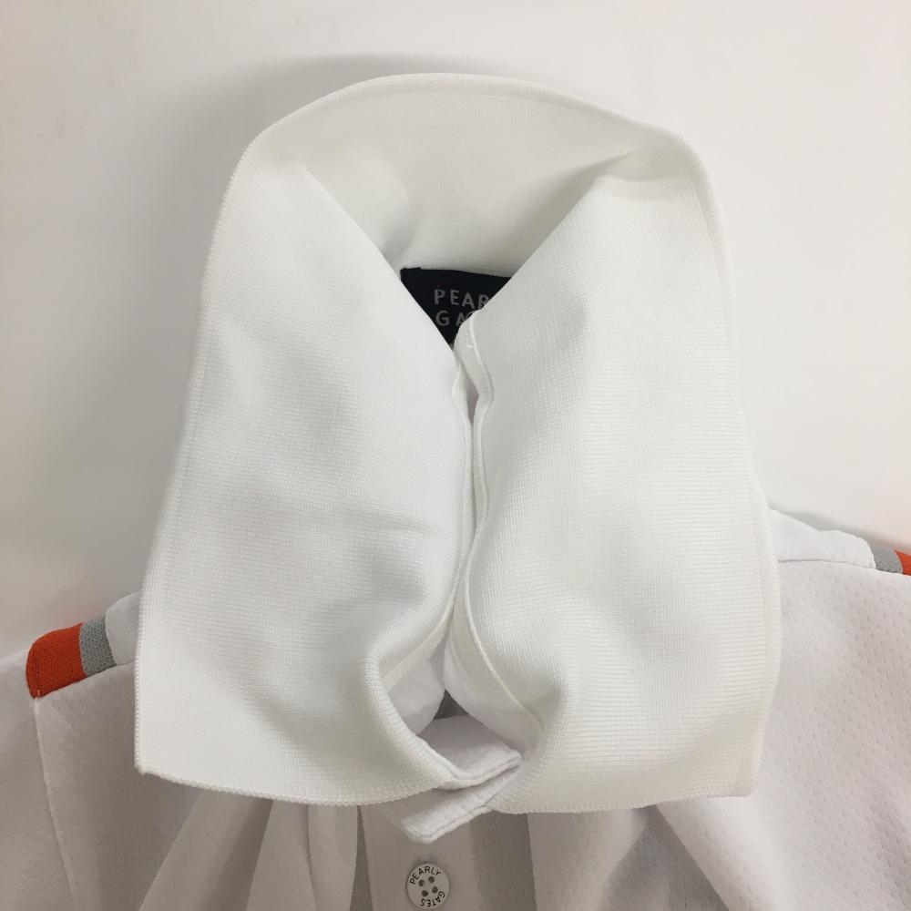 【美品】パーリーゲイツ 半袖ポロシャツ 白×オレンジ フロントロゴ サイドライン メンズ 5(L) ゴルフウェア 2024年モデル PEARLY GATES