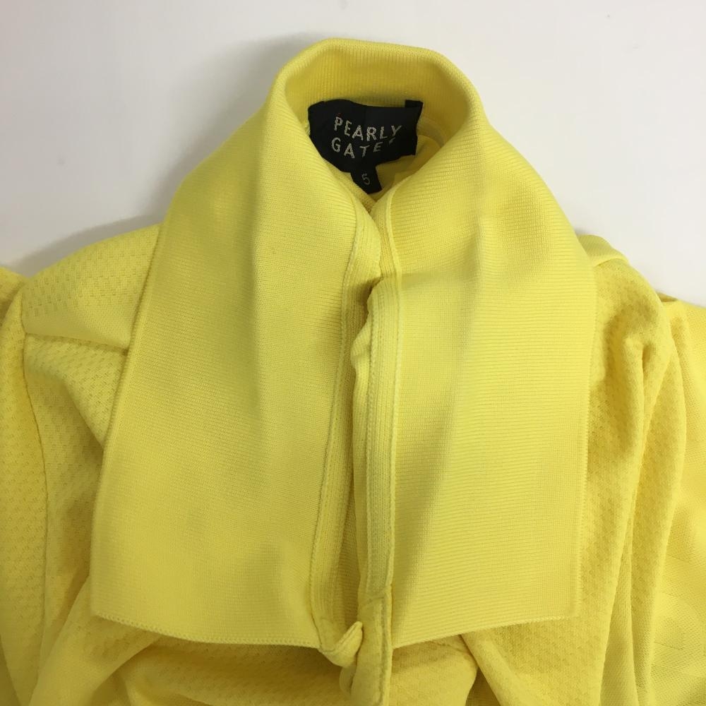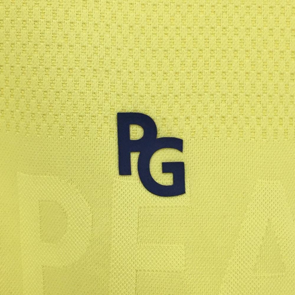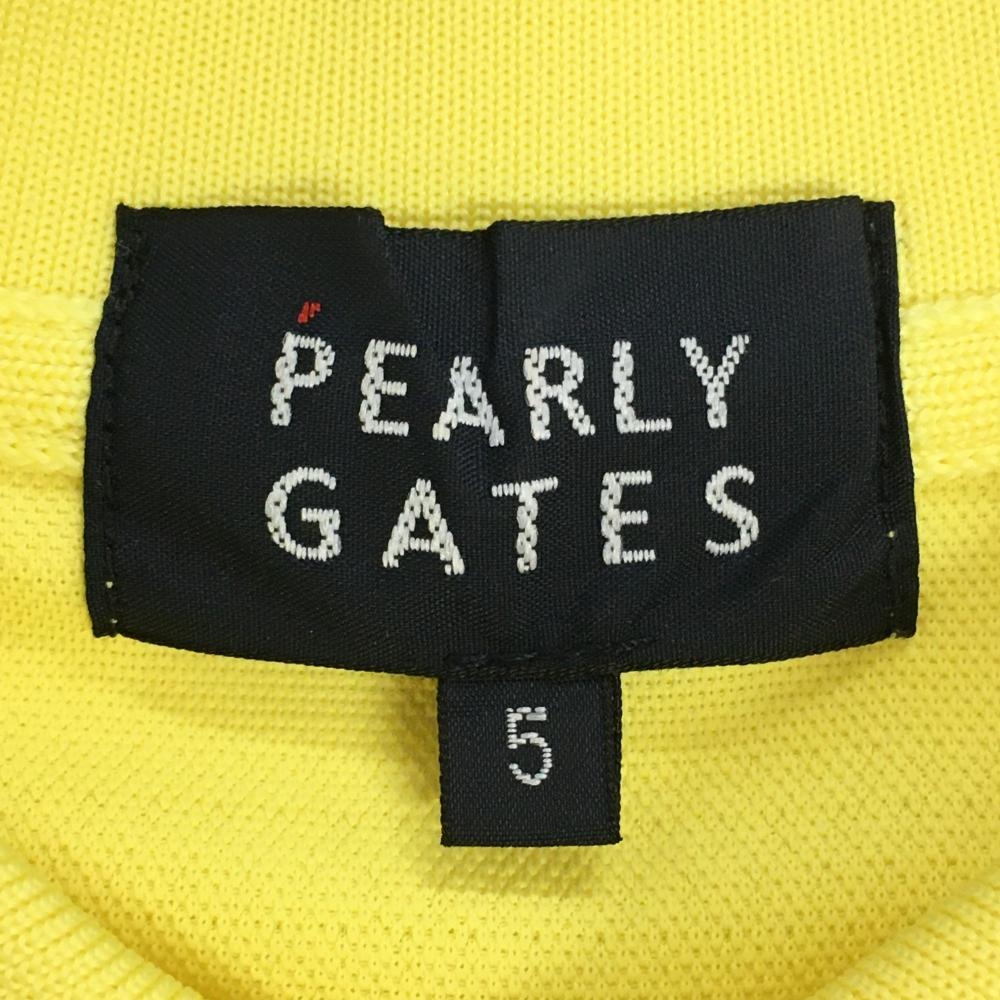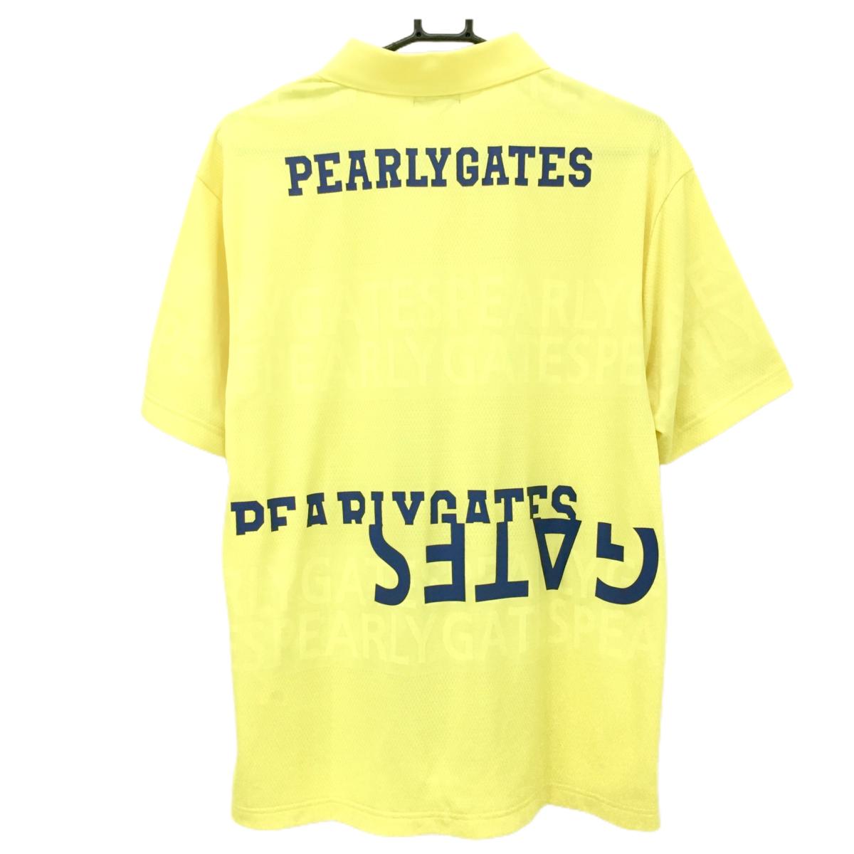 【美品】パーリーゲイツ 半袖ポロシャツ イエロー 地模様 ロゴネイビー メンズ 5(L) ゴルフウェア 2024年モデル PEARLY GATES