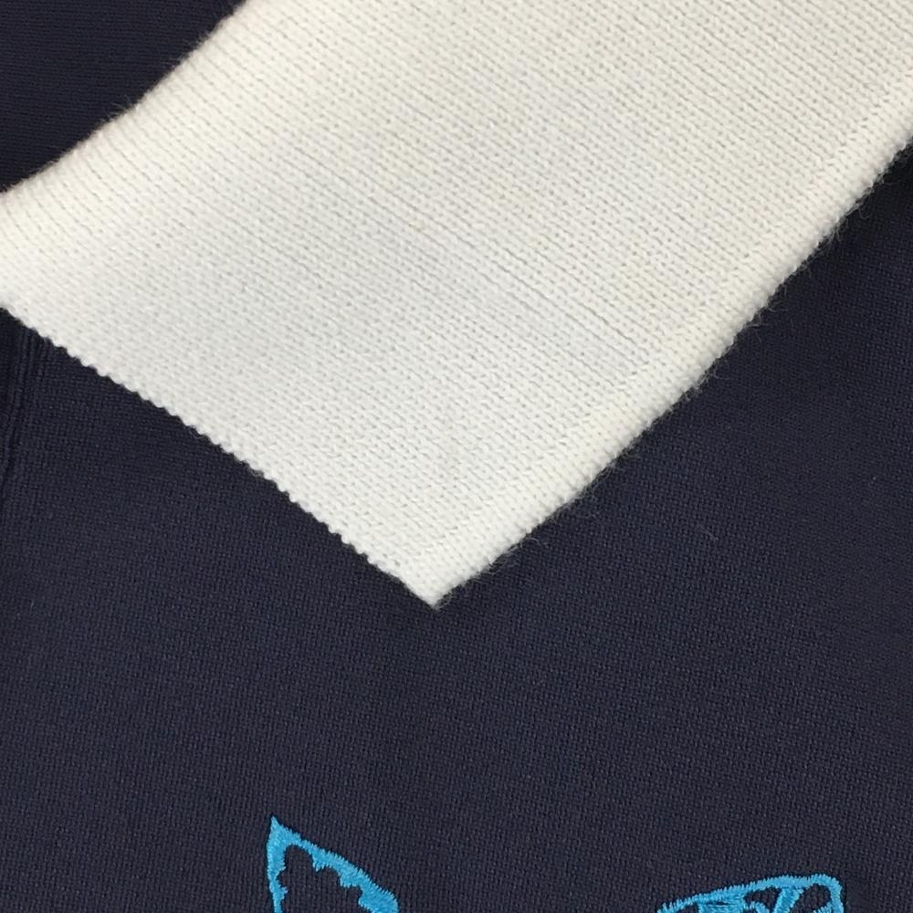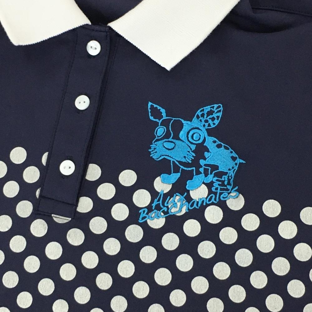 【美品】オーバカナル 半袖ポロシャツ ネイビー×白 ドット ロゴ刺しゅう レディース 0 ゴルフウェア AUX BACCHANALES