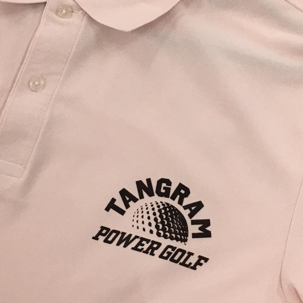 【美品】タングラム 半袖ポロシャツ ピンク×黒 背面ビッグロゴ メンズ M ゴルフウェア TANGRAM
