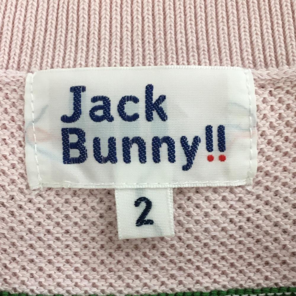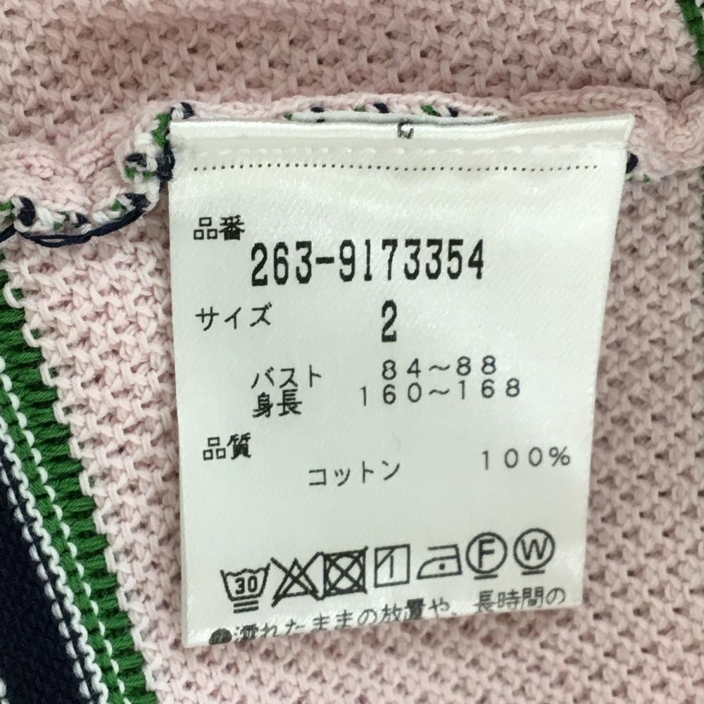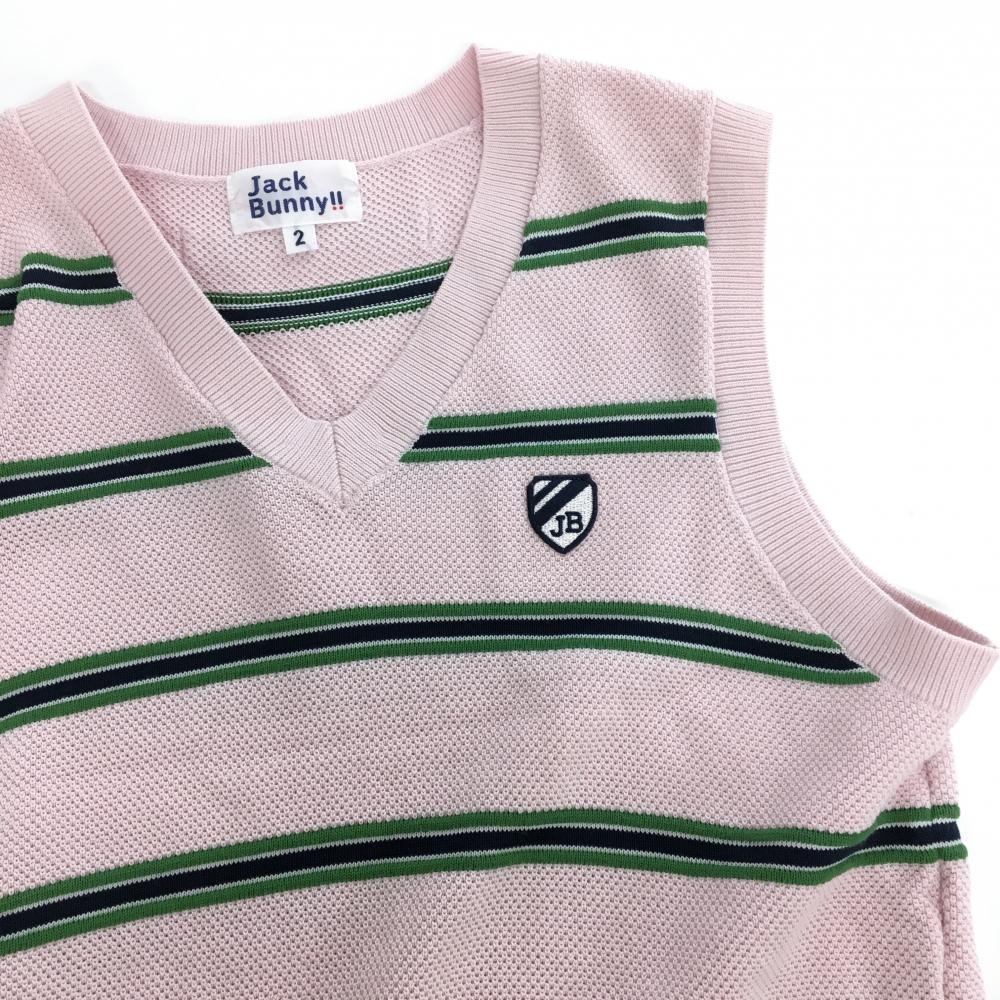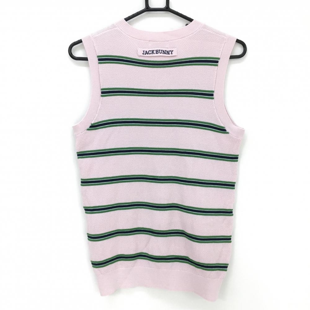【超美品】ジャックバニー ニットベスト ピンク×グリーン ボーダ コットン100% レディース 2(L) ゴルフウェア Jack Bunny
