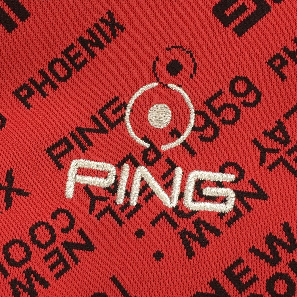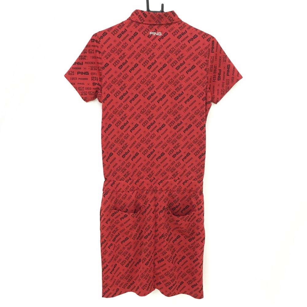 【超美品】ピン ワンピース レッド×黒 ロゴ総柄 スカート部裏地付き レディース M ゴルフウェア PING